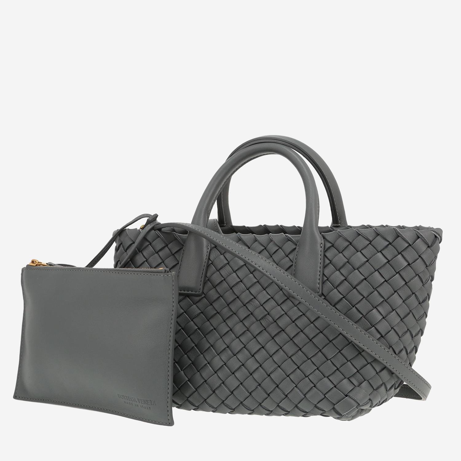 Each bag sold on Collector Square is expertly appraised and chosen for its excellent condition. Dispatched within 24 hours. CURRENT SALES The fashion week edit Chain jewellery Quiet tones Rolex o'clock Winter interior See all sales BAGS All bags Hermès Chanel Louis Vuitton Dior Saint Laurent Celine Gucci Fendi Bottega Veneta Loewe See all brands WATCHES All watches Rolex Cartier Patek Philippe Chanel Audemars Piguet Jaeger-LeCoultre Omega Hermès Piaget Breitling See all brands JEWELLERY All jewellery Cartier Van Cleef & Arpels Bulgari Pomellato Fred Boucheron Tiffany & Co Chanel Hermès Dior Chaumet See all brands ART & COLLECTABLES All Collectibles Fine Art Objects Works on paper Collectables SELL AN ITEM EXPERTS & SERVICES Our Experts Watch Service Center Leather Goods Service Center Jewellery Service Center LIVE SHOPPING LOG IN Customer service Showroom CURRENT SALES BAGS BRANDS Hermès Chanel Louis Vuitton Dior Saint Laurent Celine Gucci Fendi Bottega Veneta Loewe ALL BRANDS ICONIC MODELS Hermès Birkin Hermès Kelly Hermès Constance Chanel Timeless Chanel 2.55 Louis Vuitton Keepall Louis Vuitton Editions Limitées Dior Lady Dior Dior Saddle Goyard Saint-Louis Fendi Baguette QUICK SEARCH Bags for men Bags for women Handbags Shoulder bags Travel bags Trunks Shopping bags Backpacks Clutches Leather Goods Service Center FIND OUT Watch Service Center FIND OUT Jewellery Service Center FIND OUT Home / Bags / Bottega Veneta / Cabat / Bottega Veneta Cabat small model shopping bag in grey intrecciato leather BOTTEGA VENETA 3,980 € Retail price recorded on the basis of similar items in 2026 Retail Price: 4,700 € Condition : Very good condition Collection : Cabat Model : Cabat Gender : Ladies Period : 2020's Color : Grey Material : Leather Length : 19 cm Height : 15 cm Width : 13 cm Category : Tote Shoulder strap : 60 cm Comment from our specialist: Charming small model Bottega Veneta Cabat shopping bag in grey intrecciato leather, hardware in gilt metal, double handle in grey leather, one removable shoulder strap in grey leather allowing the bag to be worn in the hand or on the shoulder or accross the body. Very good condition : nice model, very good condition inside. View the ratings for Cabat bags Available at the Paris showroom Make an appointment All items come with a certificate of authenticity. Each item is appraised before being listed and reviewed by our committee of recognized experts and specialists. Learn more about our experts All items are stocked by Collector Square and shipped within 24 hours. Secure delivery is handled by professional carriers (UPS or DHL) between 9 a.m. – Rest of the world: €90, within 6 to 8 business days. These rates may vary for items over €10,000. 14-days return policy You have 14 days from the dat