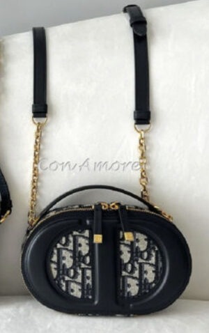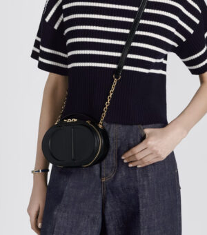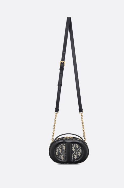New for Fall 2023, Maria Grazia Chiuri has created the CD Signature oval Camera bag to combine functional design with the House’s modern spirit. Featuring a spacious compartment, it is completed by three interior card slots and a two-way zip closure. Its leather top handle and adjustable, removable chain strap allow it to be carried by hand, worn over the shoulder or crossbody as an ideal daily companion.