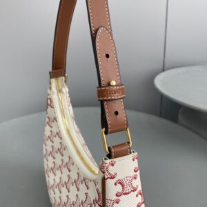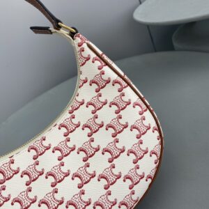 Celine Ava Bag In Triomphe Canvas White/Red For Women 9in/23.5cm