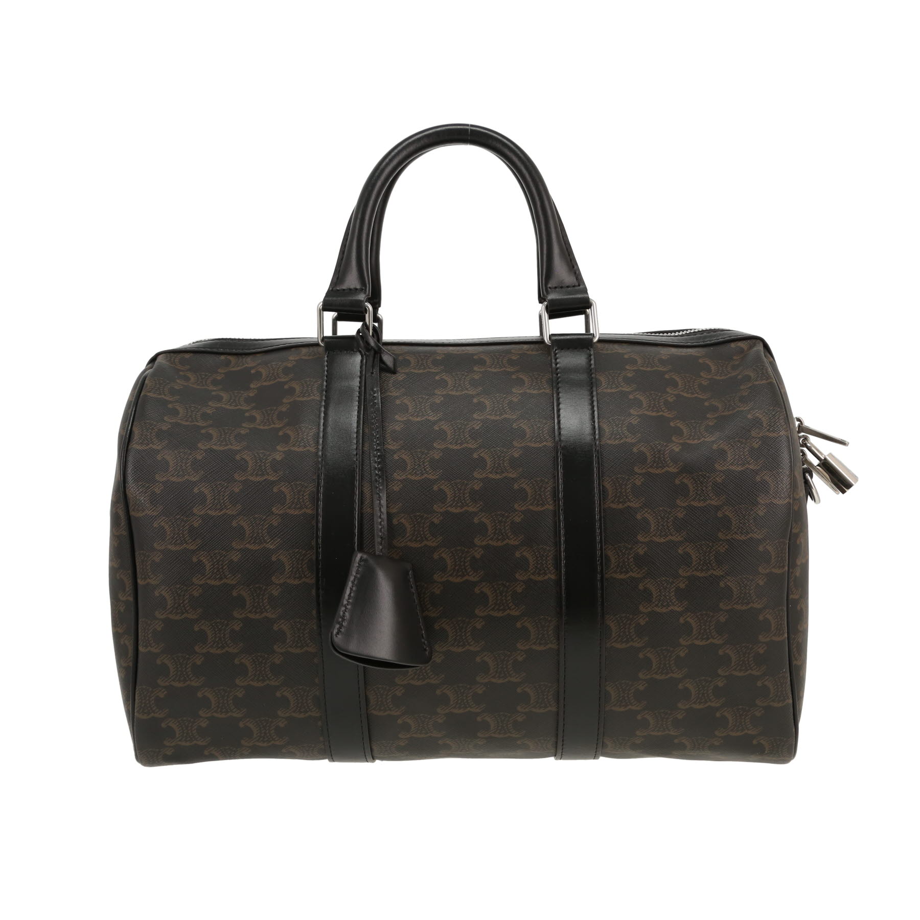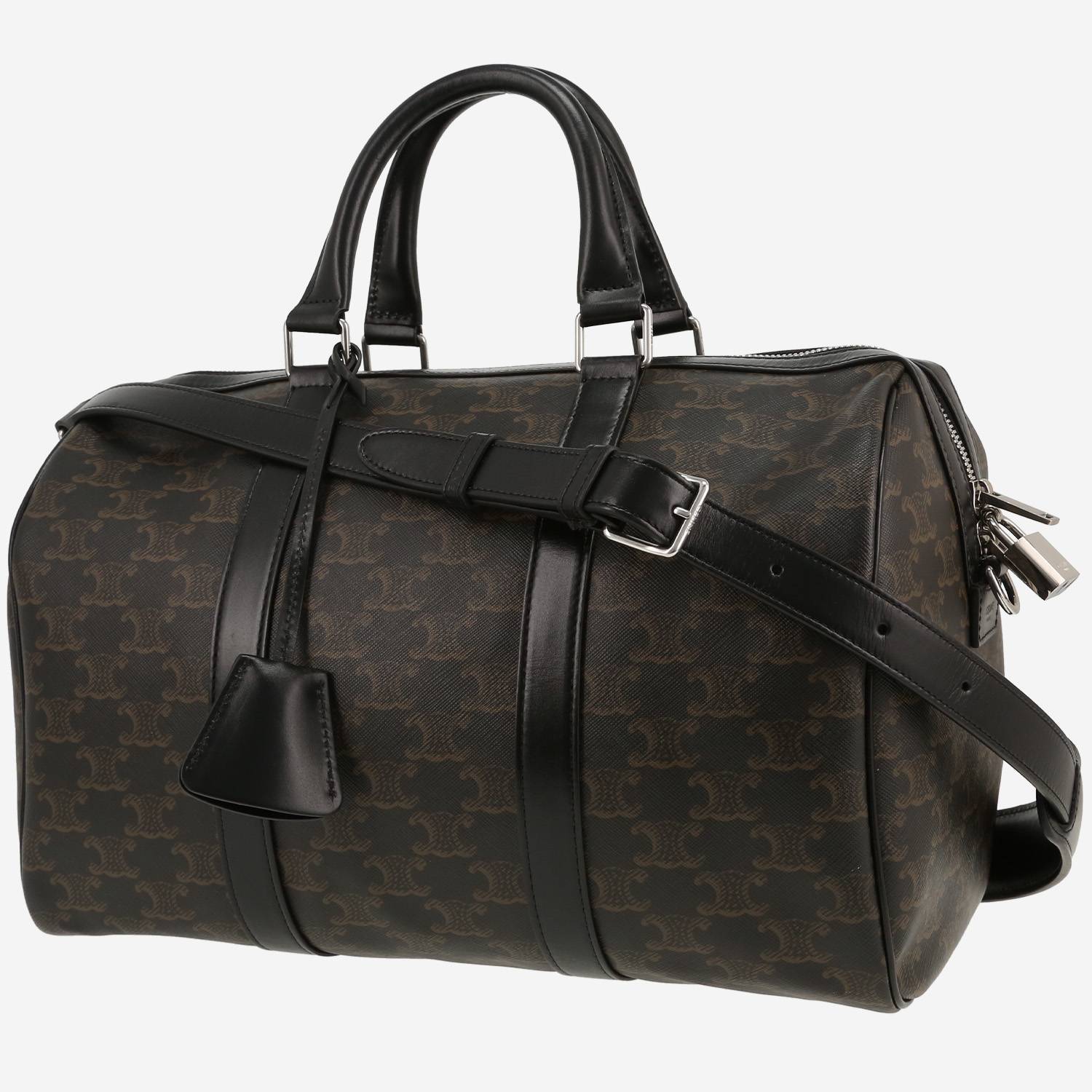 Celine Boston handbag in brown "Triomphe" canvas and black leather