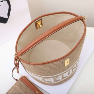 Celine Bucket 16 Bag In Striped Textile Beige For Women 9.8in/25cm