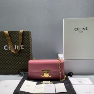 Celine Chain Shoulder Bag Triomphe Pink For Women 8in/20.5cm