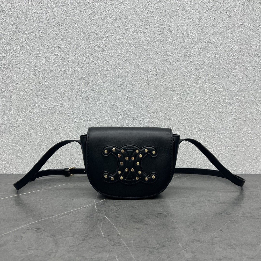 Celine Folco Cuir Triomphe With Studs Black For Women 7in/19cm