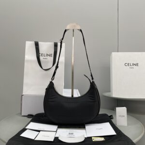 Celine Medium Ava Bag With Celine Strap In Quilted Nylon Black For Women 9in/23cm 196972DLI.38SI