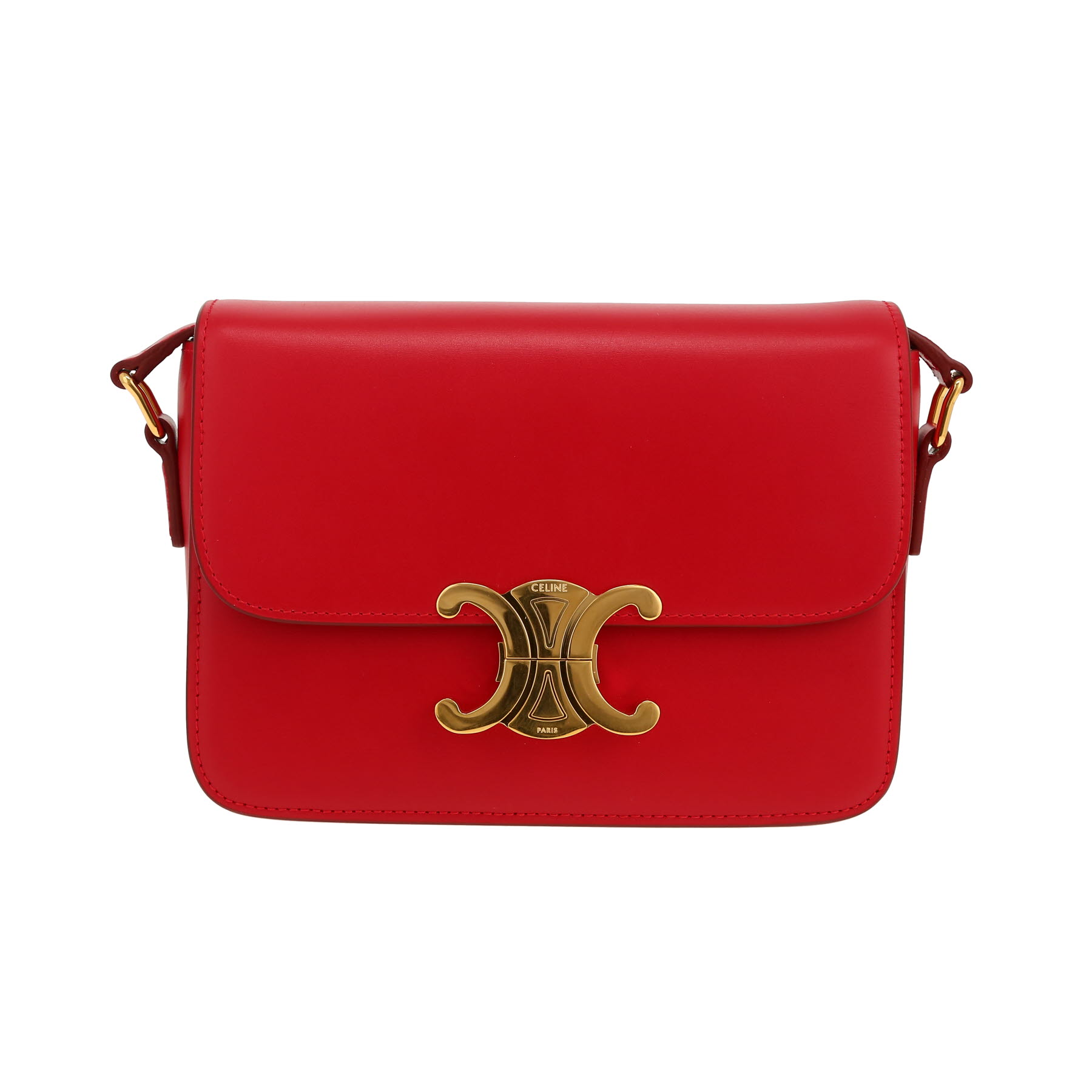 Each bag sold on Collector Square is expertly appraised and chosen for its excellent condition. Dispatched within 24 hours. CURRENT SALES Vendôme treasures The fashion week edit Chain jewellery Quiet tones Rolex o'clock Winter interior See all sales BAGS All bags Hermès Chanel Louis Vuitton Dior Saint Laurent Celine Gucci Fendi Bottega Veneta Loewe See all brands WATCHES All watches Rolex Cartier Patek Philippe Chanel Audemars Piguet Jaeger-LeCoultre Omega Hermès Piaget Breitling See all brands JEWELLERY All jewellery Cartier Van Cleef & Arpels Bulgari Pomellato Fred Boucheron Tiffany & Co Chanel Hermès Dior Chaumet See all brands ART & COLLECTABLES All Collectibles Fine Art Objects Works on paper Collectables SELL AN ITEM EXPERTS & SERVICES Our Experts Watch Service Center Leather Goods Service Center Jewellery Service Center LIVE SHOPPING LOG IN Customer service Showroom CURRENT SALES BAGS BRANDS Hermès Chanel Louis Vuitton Dior Saint Laurent Celine Gucci Fendi Bottega Veneta Loewe ALL BRANDS ICONIC MODELS Hermès Birkin Hermès Kelly Hermès Constance Chanel Timeless Chanel 2.55 Louis Vuitton Keepall Louis Vuitton Editions Limitées Dior Lady Dior Dior Saddle Goyard Saint-Louis Fendi Baguette QUICK SEARCH Bags for men Bags for women Handbags Shoulder bags Travel bags Trunks Shopping bags Backpacks Clutches Leather Goods Service Center FIND OUT Watch Service Center FIND OUT Jewellery Service Center FIND OUT Home / Bags / Celine / Triomphe / Celine Triomphe Teen shoulder bag in red leather CELINE 2,550 € Retail price recorded on the basis of similar items in 2026 Retail Price: 3,300 € Condition : Very good condition Collection : Triomphe Model : Triomphe Teen Gender : Ladies Period : 2020's Color : Red Material : Leather Length : 18,5 cm Height : 13,5 cm Width : 7 cm Category : Shoulder bag Shoulder strap : 35-48 cm Comment from our specialist: Unavoidable Celine Triomphe Teen shoulder bag in red leather, hardware in gilt metal, one adjustable shoulder strap in red leather allowing the bag to be worn on the shoulder or accross the body. Very good condition : nice color, very good condition inside, micro patina on the fastener. View the ratings for Triomphe Teen bags Available at the Paris showroom Make an appointment All items come with a certificate of authenticity. Each item is appraised before being listed and reviewed by our committee of recognized experts and specialists. Learn more about our experts All items are stocked by Collector Square and shipped within 24 hours. Secure delivery is handled by professional carriers (UPS or DHL) between 9 a.m. – Rest of the world: €90, within 6 to 8 business days. These rates may vary for items over €10,000. 14-days return policy You have 14 days from the date of receipt of your item