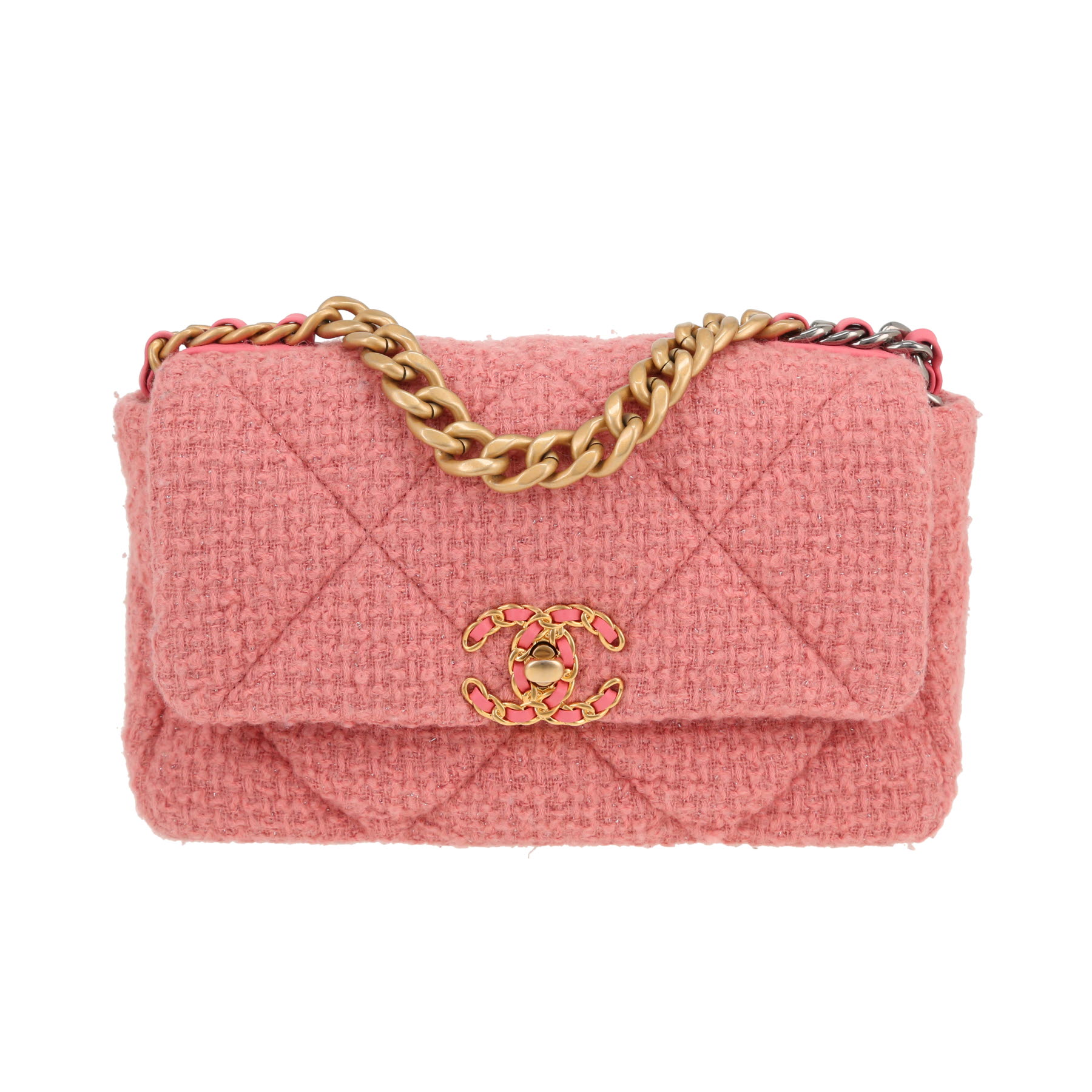 Chanel 19 medium model shoulder bag in pink tweed