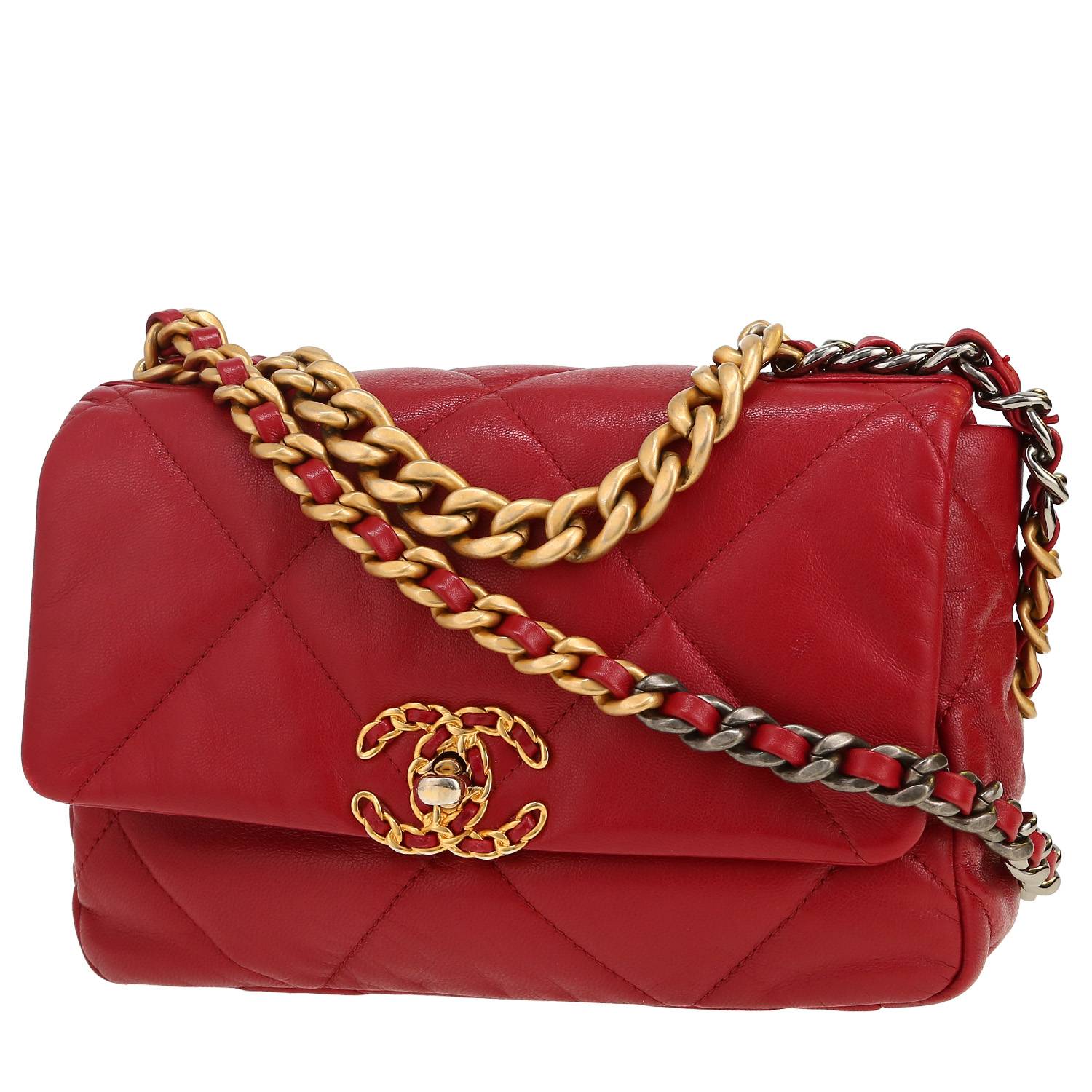 Each bag sold on Collector Square is expertly appraised and chosen for its excellent condition. Dispatched within 24 hours. CURRENT SALES The fashion week edit Chain jewellery Quiet tones Rolex o'clock Winter interior See all sales BAGS All bags Hermès Chanel Louis Vuitton Dior Saint Laurent Celine Gucci Fendi Bottega Veneta Loewe See all brands WATCHES All watches Rolex Cartier Patek Philippe Chanel Audemars Piguet Jaeger-LeCoultre Omega Hermès Piaget Breitling See all brands JEWELLERY All jewellery Cartier Van Cleef & Arpels Bulgari Pomellato Fred Boucheron Tiffany & Co Chanel Hermès Dior Chaumet See all brands ART & COLLECTABLES All Collectibles Fine Art Objects Works on paper Collectables SELL AN ITEM EXPERTS & SERVICES Our Experts Watch Service Center Leather Goods Service Center Jewellery Service Center LIVE SHOPPING LOG IN Customer service Showroom CURRENT SALES BAGS BRANDS Hermès Chanel Louis Vuitton Dior Saint Laurent Celine Gucci Fendi Bottega Veneta Loewe ALL BRANDS ICONIC MODELS Hermès Birkin Hermès Kelly Hermès Constance Chanel Timeless Chanel 2.55 Louis Vuitton Keepall Louis Vuitton Editions Limitées Dior Lady Dior Dior Saddle Goyard Saint-Louis Fendi Baguette QUICK SEARCH Bags for men Bags for women Handbags Shoulder bags Travel bags Trunks Shopping bags Backpacks Clutches Leather Goods Service Center FIND OUT Watch Service Center FIND OUT Jewellery Service Center FIND OUT Home / Bags / Chanel / 19 / Chanel 19 shoulder bag in burgundy quilted leather CHANEL 5,250 € Retail price recorded on the basis of similar items in 2026 Retail Price: 6,500 € Condition : Very good condition Collection : 19 Model : 19 Gender : Ladies Year : 2021 Color : Burgundy Material : Leather Length : 25 cm Height : 17 cm Width : 7 cm Category : Shoulder bag Shoulder strap : 50 cm Comment from our specialist: Charming Chanel 19 shoulder bag in burgundy quilted leather, hardware in gilt and silver metal, top handle gilt metal, one chain strap in gilt and silver metal interwoven with burgundy leather allowing the bag to be worn in the hand or on the shoulder or accross the body. Year : 2021. Very good condition : bright color, very good condition inside, small patina of the leather of the bag, gilding partly worn off decorative detail. View the ratings for 19 bags Available at the Paris showroom Make an appointment All items come with a certificate of authenticity. Each item is appraised before being listed and reviewed by our committee of recognized experts and specialists. Learn more about our experts All items are stocked by Collector Square and shipped within 24 hours. Secure delivery is handled by professional carriers (UPS or DHL) between 9 a.m. – Rest of the world: €90, within 6 to 8 business days. These rates may vary for items over €1