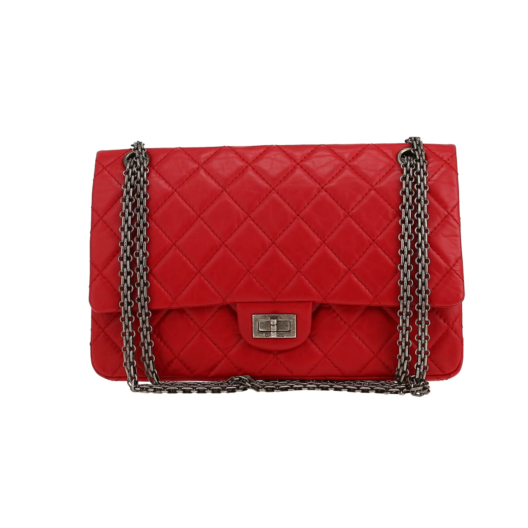 Each bag sold on Collector Square is expertly appraised and chosen for its excellent condition. Dispatched within 24 hours. CURRENT SALES The fashion week edit Chain jewellery Quiet tones Rolex o'clock Winter interior See all sales BAGS All bags Hermès Chanel Louis Vuitton Dior Saint Laurent Celine Gucci Fendi Bottega Veneta Loewe See all brands WATCHES All watches Rolex Cartier Patek Philippe Chanel Audemars Piguet Jaeger-LeCoultre Omega Hermès Piaget Breitling See all brands JEWELLERY All jewellery Cartier Van Cleef & Arpels Bulgari Pomellato Fred Boucheron Tiffany & Co Chanel Hermès Dior Chaumet See all brands ART & COLLECTABLES All Collectibles Fine Art Objects Works on paper Collectables SELL AN ITEM EXPERTS & SERVICES Our Experts Watch Service Center Leather Goods Service Center Jewellery Service Center LIVE SHOPPING LOG IN Customer service Showroom CURRENT SALES BAGS BRANDS Hermès Chanel Louis Vuitton Dior Saint Laurent Celine Gucci Fendi Bottega Veneta Loewe ALL BRANDS ICONIC MODELS Hermès Birkin Hermès Kelly Hermès Constance Chanel Timeless Chanel 2.55 Louis Vuitton Keepall Louis Vuitton Editions Limitées Dior Lady Dior Dior Saddle Goyard Saint-Louis Fendi Baguette QUICK SEARCH Bags for men Bags for women Handbags Shoulder bags Travel bags Trunks Shopping bags Backpacks Clutches Leather Goods Service Center FIND OUT Watch Service Center FIND OUT Jewellery Service Center FIND OUT Home / Bags / Chanel / 2.55 / Chanel 2.55 large model shoulder bag in red quilted leather CHANEL 5,980 € Retail price recorded on the basis of similar items in 2026 Retail Price: 11,100 € Condition : Very good condition Collection : 2.55 Model : 2.55 Gender : Ladies Year : 2012 Color : Red Material : Leather Length : 28 cm Height : 20 cm Width : 8 cm Category : Shoulder bag Shoulder strap : 27-47 cm Comment from our specialist: Lovely large model Chanel 2.55 shoulder bag in red quilted leather, hardware in blackened silver metal, one convertible chain strap in blackened silver metal allowing the bag to be worn in the hand or on the shoulder or accross the body. Year : 2012. Very good condition : nice model, patina inside and outside of the bag. Receive report about the value of 2.55 bags Available at the Paris showroom Make an appointment All items come with a certificate of authenticity. Each item is appraised before being listed and reviewed by our committee of recognized experts and specialists. Learn more about our experts All items are stocked by Collector Square and shipped within 24 hours. Secure delivery is handled by professional carriers (UPS or DHL) between 9 a.m. – Rest of the world: €90, within 6 to 8 business days. These rates may vary for items over €10,000. 14-days return policy You have 14 days from the date of receipt of your it