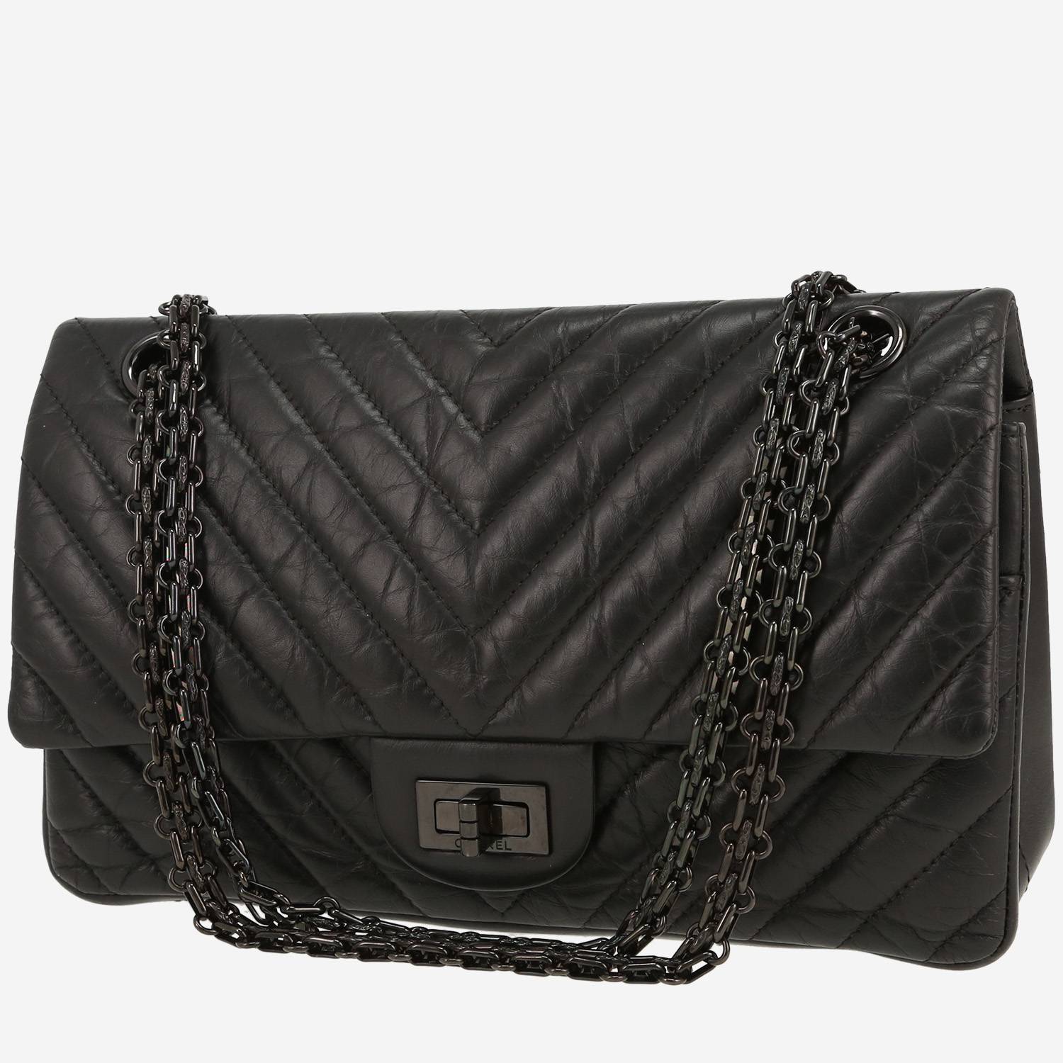 Chanel 2.55 shoulder bag in black chevron quilted leather
