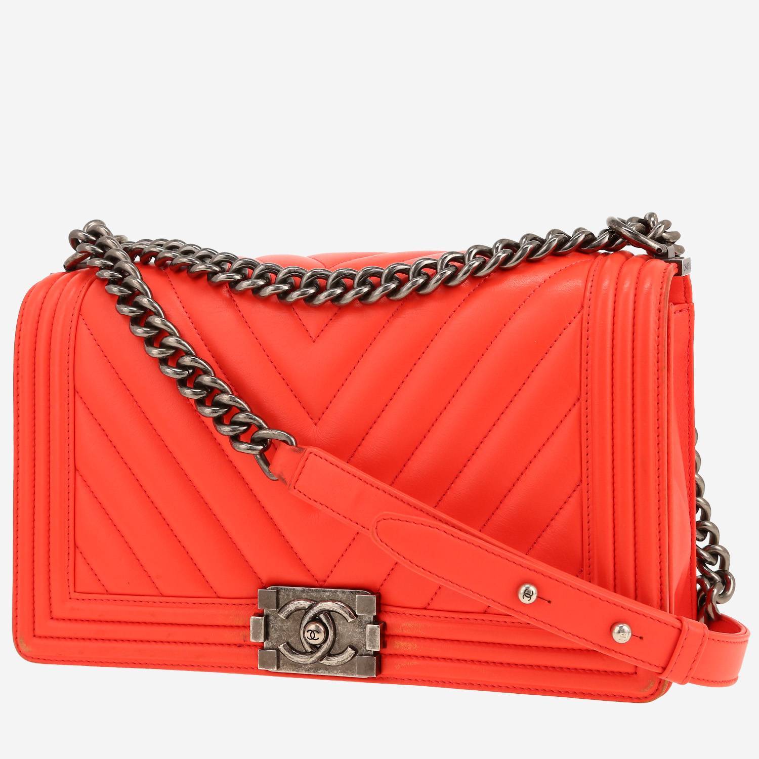 Each bag sold on Collector Square is expertly appraised and chosen for its excellent condition. Dispatched within 24 hours. CURRENT SALES Vendôme treasures The fashion week edit Chain jewellery Quiet tones Rolex o'clock Winter interior See all sales BAGS All bags Hermès Chanel Louis Vuitton Dior Saint Laurent Celine Gucci Fendi Bottega Veneta Loewe See all brands WATCHES All watches Rolex Cartier Patek Philippe Chanel Audemars Piguet Jaeger-LeCoultre Omega Hermès Piaget Breitling See all brands JEWELLERY All jewellery Cartier Van Cleef & Arpels Bulgari Pomellato Fred Boucheron Tiffany & Co Chanel Hermès Dior Chaumet See all brands ART & COLLECTABLES All Collectibles Fine Art Objects Works on paper Collectables SELL AN ITEM EXPERTS & SERVICES Our Experts Watch Service Center Leather Goods Service Center Jewellery Service Center LIVE SHOPPING LOG IN Customer service Showroom CURRENT SALES BAGS BRANDS Hermès Chanel Louis Vuitton Dior Saint Laurent Celine Gucci Fendi Bottega Veneta Loewe ALL BRANDS ICONIC MODELS Hermès Birkin Hermès Kelly Hermès Constance Chanel Timeless Chanel 2.55 Louis Vuitton Keepall Louis Vuitton Editions Limitées Dior Lady Dior Dior Saddle Goyard Saint-Louis Fendi Baguette QUICK SEARCH Bags for men Bags for women Handbags Shoulder bags Travel bags Trunks Shopping bags Backpacks Clutches Leather Goods Service Center FIND OUT Watch Service Center FIND OUT Jewellery Service Center FIND OUT Home / Bags / Chanel / Boy / Chanel Boy shoulder bag in orange red chevron quilted leather CHANEL 3,050 € Retail price recorded on the basis of similar items in 2026 Retail Price: 7,100 € Condition : Good Collection : Boy Model : Boy Gender : Ladies Year : 2016 Color : Orange, Red Material : Leather Length : 28 cm Height : 16 cm Width : 7 cm Category : Shoulder bag Shoulder strap : 33 – 52 cm Comment from our specialist: Charming Chanel Boy shoulder bag in orange red chevron quilted leather, hardware in blackened silver metal, one adjustable chain strap in blackened silver metal allowing the bag to be worn in the hand or on the shoulder or accross the body. Year : 2016. Good condition : nice model, signs of wear at the front of the bag, patina on the corners of the bag. View the ratings for Boy bags Available at the Paris showroom Make an appointment All items come with a certificate of authenticity. Each item is appraised before being listed and reviewed by our committee of recognized experts and specialists. Learn more about our experts All items are stocked by Collector Square and shipped within 24 hours. Secure delivery is handled by professional carriers (UPS or DHL) between 9 a.m. – Rest of the world: €90, within 6 to 8 business days. These rates may vary for items over €10,000. 14-days return policy You have 14 days from