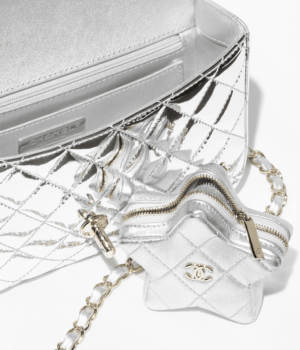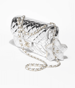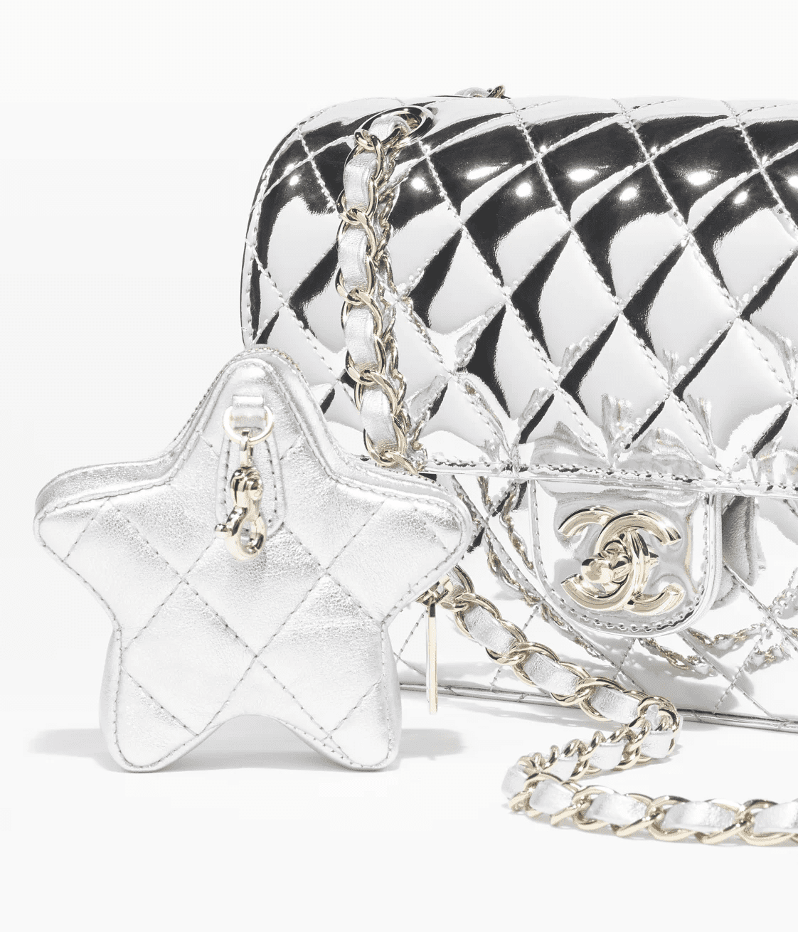 Metallic mirrored calfskin, metallic lambskin and gold-plated metal
