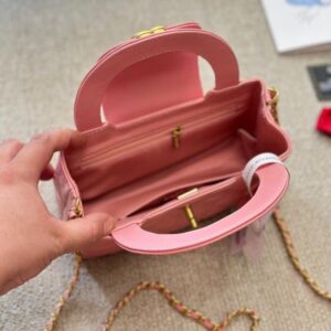 Shiny Aged Calfskin & Gold-Tone MetalCoral Pink