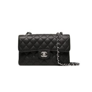 CHANEL SMALL CLASSIC HANDBAG Grained Calfskin & Silver Metal