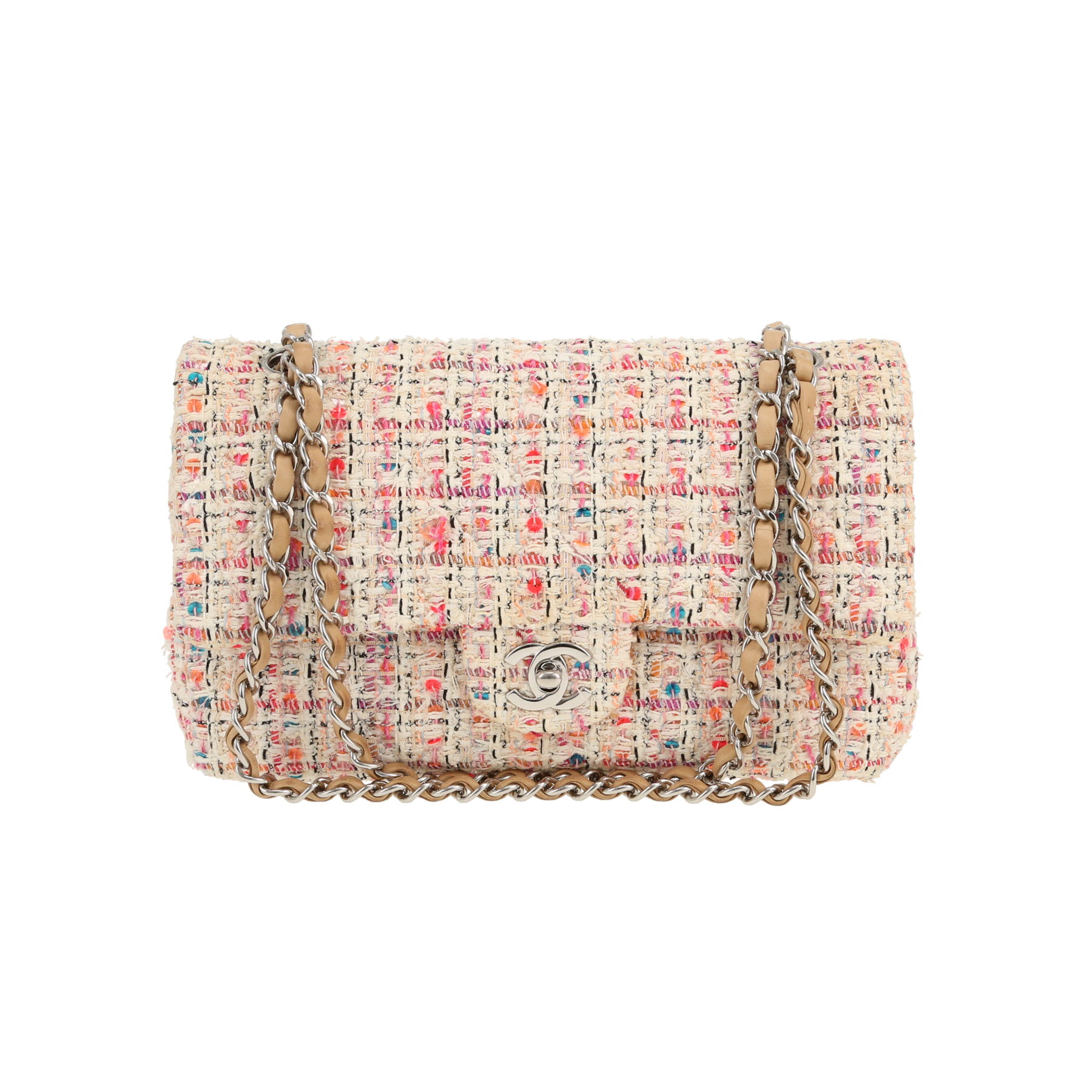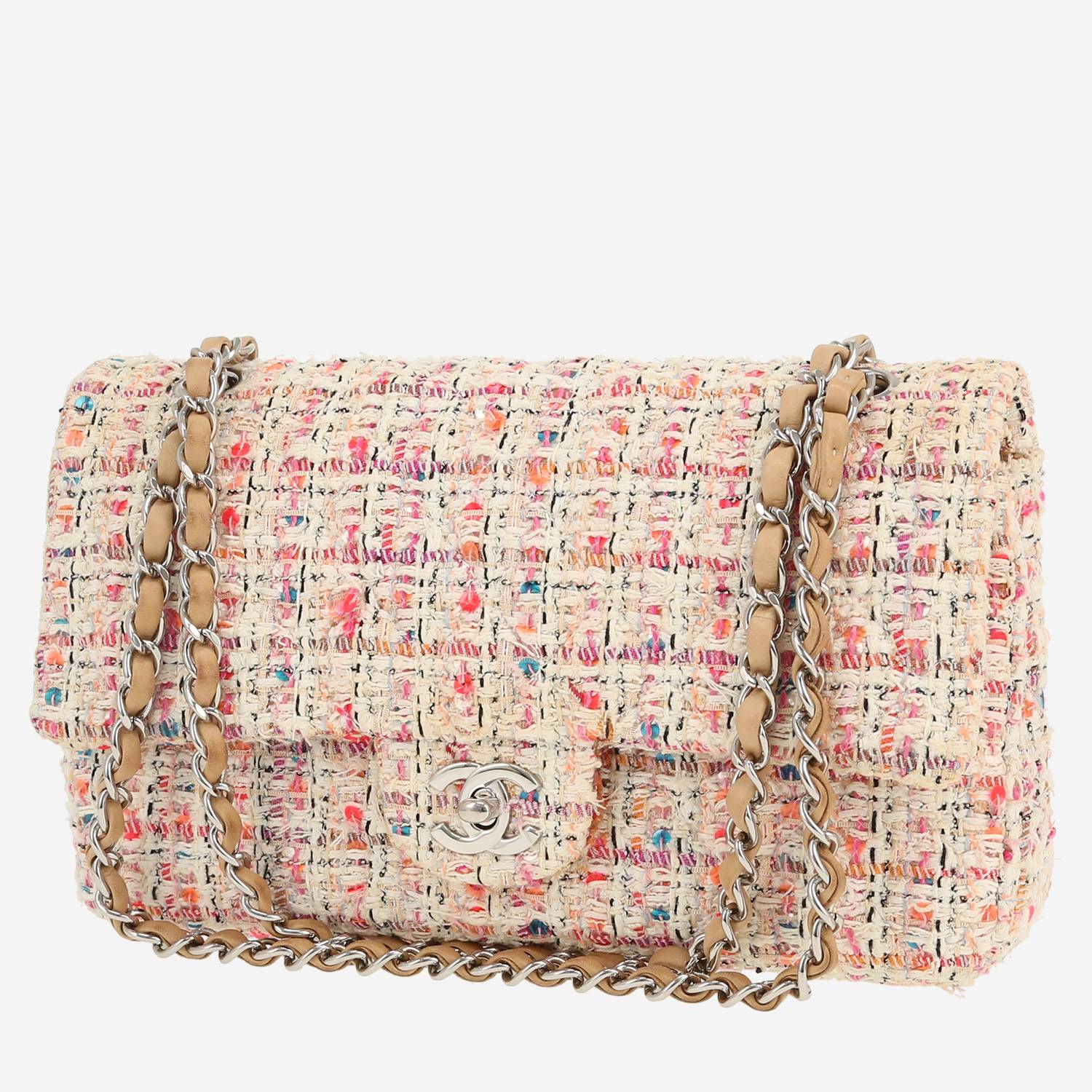 Each bag sold on Collector Square is expertly appraised and chosen for its excellent condition. Dispatched within 24 hours. CURRENT SALES The fashion week edit Chain jewellery Quiet tones Rolex o'clock Winter interior See all sales BAGS All bags Hermès Chanel Louis Vuitton Dior Saint Laurent Celine Gucci Fendi Bottega Veneta Loewe See all brands WATCHES All watches Rolex Cartier Patek Philippe Chanel Audemars Piguet Jaeger-LeCoultre Omega Hermès Piaget Breitling See all brands JEWELLERY All jewellery Cartier Van Cleef & Arpels Bulgari Pomellato Fred Boucheron Tiffany & Co Chanel Hermès Dior Chaumet See all brands ART & COLLECTABLES All Collectibles Fine Art Objects Works on paper Collectables SELL AN ITEM EXPERTS & SERVICES Our Experts Watch Service Center Leather Goods Service Center Jewellery Service Center LIVE SHOPPING LOG IN Customer service Showroom CURRENT SALES BAGS BRANDS Hermès Chanel Louis Vuitton Dior Saint Laurent Celine Gucci Fendi Bottega Veneta Loewe ALL BRANDS ICONIC MODELS Hermès Birkin Hermès Kelly Hermès Constance Chanel Timeless Chanel 2.55 Louis Vuitton Keepall Louis Vuitton Editions Limitées Dior Lady Dior Dior Saddle Goyard Saint-Louis Fendi Baguette QUICK SEARCH Bags for men Bags for women Handbags Shoulder bags Travel bags Trunks Shopping bags Backpacks Clutches Leather Goods Service Center FIND OUT Watch Service Center FIND OUT Jewellery Service Center FIND OUT Home / Bags / Chanel / Timeless / Chanel Timeless Classic handbag in beige and pink tweed CHANEL 5,980 € Retail price recorded on the basis of similar items in 2026 Retail Price: 10,300 € Condition : Very good condition Collection : Timeless Model : Timeless Classic Gender : Ladies Year : 2011 Color : Beige, Pink Material : Canvas and leather Length : 25 cm Height : 15 cm Width : 7 cm Category : Handbag Shoulder strap : 24 – 44 cm Comment from our specialist: Wonderful Chanel Timeless Classic handbag in beige and pink tweed, hardware in silver metal, one convertible chain strap in silver metal interwoven with beige leather allowing the bag to be worn in the hand or on the shoulder. Year : 2011. Very good condition : nice model, small patina inside and outside of the bag. Receive report about the value of Timeless bags Available at the Paris showroom Make an appointment All items come with a certificate of authenticity. Each item is appraised before being listed and reviewed by our committee of recognized experts and specialists. Learn more about our experts All items are stocked by Collector Square and shipped within 24 hours. Secure delivery is handled by professional carriers (UPS or DHL) between 9 a.m. – Rest of the world: €90, within 6 to 8 business days. These rates may vary for items over €10,000. 14-days return policy You have 14 days from