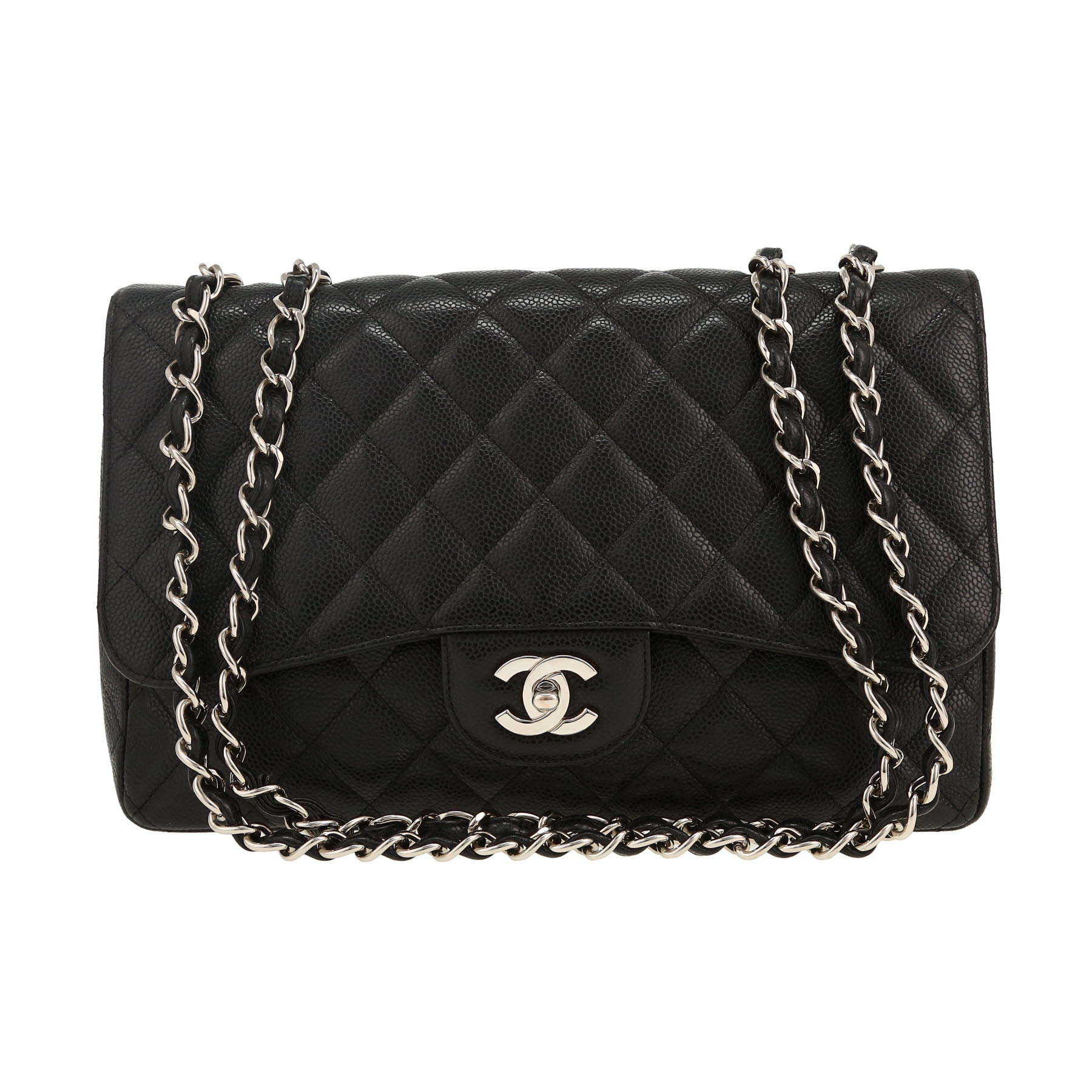 Each bag sold on Collector Square is expertly appraised and chosen for its excellent condition. Dispatched within 24 hours. CURRENT SALES The fashion week edit Chain jewellery Quiet tones Rolex o'clock Winter interior See all sales BAGS All bags Hermès Chanel Louis Vuitton Dior Saint Laurent Celine Gucci Fendi Bottega Veneta Loewe See all brands WATCHES All watches Rolex Cartier Patek Philippe Chanel Audemars Piguet Jaeger-LeCoultre Omega Hermès Piaget Breitling See all brands JEWELLERY All jewellery Cartier Van Cleef & Arpels Bulgari Pomellato Fred Boucheron Tiffany & Co Chanel Hermès Dior Chaumet See all brands ART & COLLECTABLES All Collectibles Fine Art Objects Works on paper Collectables SELL AN ITEM EXPERTS & SERVICES Our Experts Watch Service Center Leather Goods Service Center Jewellery Service Center LIVE SHOPPING LOG IN Customer service Showroom CURRENT SALES BAGS BRANDS Hermès Chanel Louis Vuitton Dior Saint Laurent Celine Gucci Fendi Bottega Veneta Loewe ALL BRANDS ICONIC MODELS Hermès Birkin Hermès Kelly Hermès Constance Chanel Timeless Chanel 2.55 Louis Vuitton Keepall Louis Vuitton Editions Limitées Dior Lady Dior Dior Saddle Goyard Saint-Louis Fendi Baguette QUICK SEARCH Bags for men Bags for women Handbags Shoulder bags Travel bags Trunks Shopping bags Backpacks Clutches Leather Goods Service Center FIND OUT Watch Service Center FIND OUT Jewellery Service Center FIND OUT Home / Bags / Chanel / Timeless / Chanel Timeless Jumbo shoulder bag in black quilted grained leather CHANEL 6,980 € Retail price recorded on the basis of similar items in 2026 Retail Price: 11,100 € Condition : Very good condition Collection : Timeless Model : Timeless Jumbo Gender : Ladies Year : 2010 Color : Black Material : Leather Length : 30 cm Height : 21 cm Width : 8,5 cm Category : Shoulder bag Shoulder strap : 32 – 57 cm Comment from our specialist: Splendid Chanel Timeless Jumbo shoulder bag in black quilted grained leather, hardware in silver metal, one chain strap in silver metal interwoven with black leather allowing the bag to be worn in the hand or on the shoulder or accross the body. Year : 2010. Very good condition : nice model, patina on the corners and inside of the bag. Receive report about the value of Timeless bags Available at the Paris showroom Make an appointment All items come with a certificate of authenticity. Each item is appraised before being listed and reviewed by our committee of recognized experts and specialists. Learn more about our experts All items are stocked by Collector Square and shipped within 24 hours. Secure delivery is handled by professional carriers (UPS or DHL) between 9 a.m. – Rest of the world: €90, within 6 to 8 business days. These rates may vary for items over €10,000. 14-days return policy Y