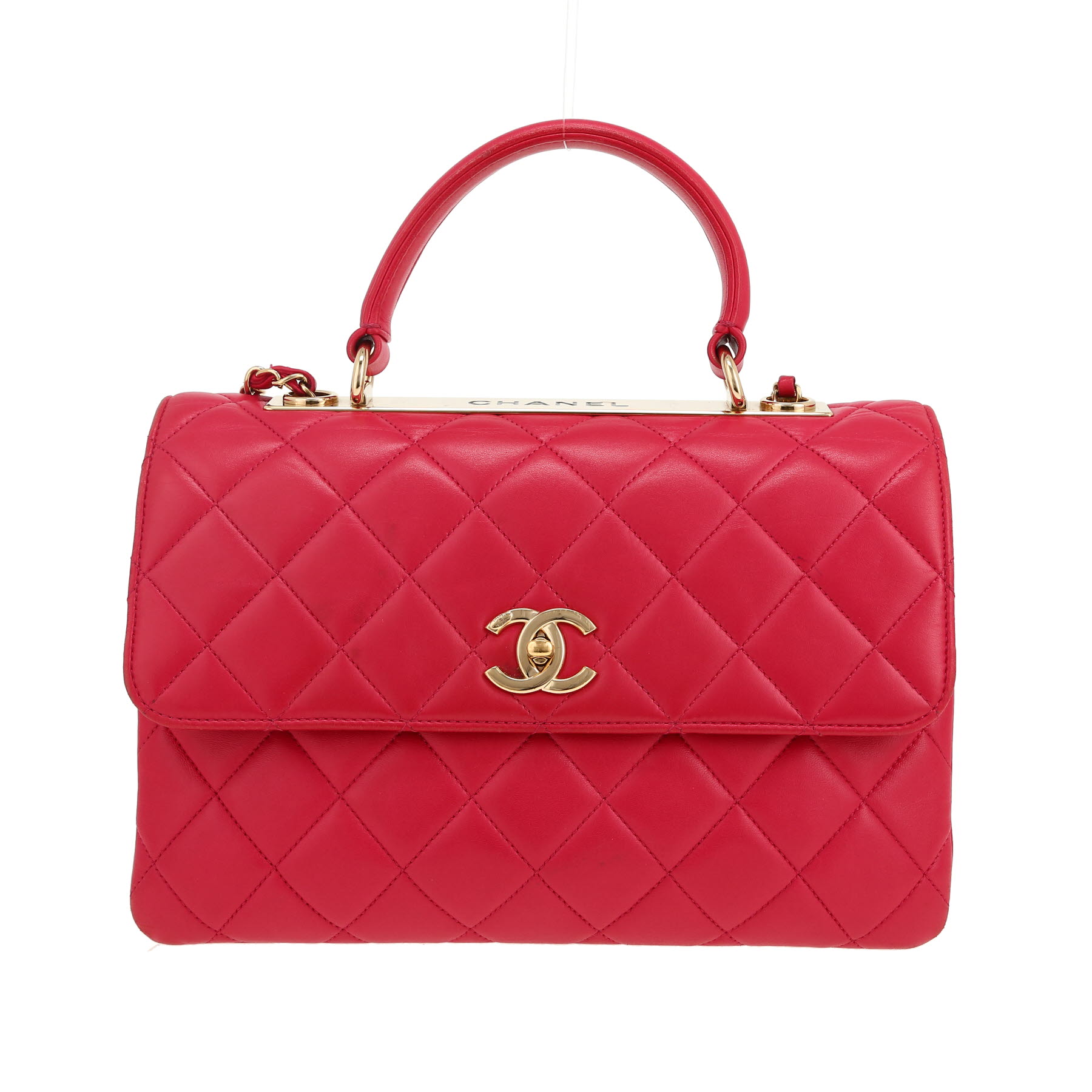 Each bag sold on Collector Square is expertly appraised and chosen for its excellent condition. Dispatched within 24 hours. CURRENT SALES The fashion week edit Chain jewellery Quiet tones Rolex o'clock Winter interior See all sales BAGS All bags Hermès Chanel Louis Vuitton Dior Saint Laurent Celine Gucci Fendi Bottega Veneta Loewe See all brands WATCHES All watches Rolex Cartier Patek Philippe Chanel Audemars Piguet Jaeger-LeCoultre Omega Hermès Piaget Breitling See all brands JEWELLERY All jewellery Cartier Van Cleef & Arpels Bulgari Pomellato Fred Boucheron Tiffany & Co Chanel Hermès Dior Chaumet See all brands ART & COLLECTABLES All Collectibles Fine Art Objects Works on paper Collectables SELL AN ITEM EXPERTS & SERVICES Our Experts Watch Service Center Leather Goods Service Center Jewellery Service Center LIVE SHOPPING LOG IN Customer service Showroom CURRENT SALES BAGS BRANDS Hermès Chanel Louis Vuitton Dior Saint Laurent Celine Gucci Fendi Bottega Veneta Loewe ALL BRANDS ICONIC MODELS Hermès Birkin Hermès Kelly Hermès Constance Chanel Timeless Chanel 2.55 Louis Vuitton Keepall Louis Vuitton Editions Limitées Dior Lady Dior Dior Saddle Goyard Saint-Louis Fendi Baguette QUICK SEARCH Bags for men Bags for women Handbags Shoulder bags Travel bags Trunks Shopping bags Backpacks Clutches Leather Goods Service Center FIND OUT Watch Service Center FIND OUT Jewellery Service Center FIND OUT Home / Bags / Chanel / Trendy CC / Chanel Trendy CC shoulder bag in pink quilted leather CHANEL 3,550 € Retail price recorded on the basis of similar items in 2026 Retail Price: 7,600 € Condition : Good Collection : Trendy CC Model : Trendy CC Gender : Ladies Year : 2018 Color : Pink Material : Leather Length : 29 cm Height : 22 cm Width : 10 cm Category : Shoulder bag Shoulder strap : 50 cm Comment from our specialist: Wonderful Chanel Trendy CC shoulder bag in pink quilted leather, hardware in gilt metal, top handle in pink leather, one shoulder strap in gilt metal interwoven with pink leather allowing the bag to be worn in the hand or on the shoulder or accross the body. Year : 2018. Good condition : bright color, patina on the corners of the bag, signs of wear inside and outside of the bag, patina on the leather of the bag. View the ratings for Trendy CC bags Available at the Paris showroom Make an appointment All items come with a certificate of authenticity. Each item is appraised before being listed and reviewed by our committee of recognized experts and specialists. Learn more about our experts All items are stocked by Collector Square and shipped within 24 hours. Secure delivery is handled by professional carriers (UPS or DHL) between 9 a.m. – Rest of the world: €90, within 6 to 8 business days. These rates may vary for items over €10,00