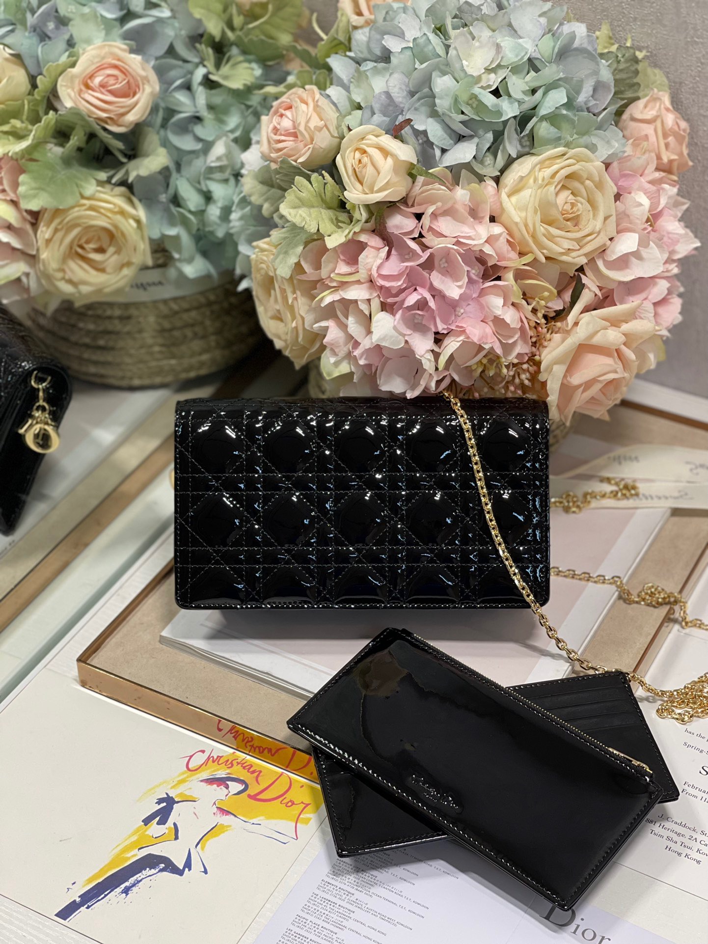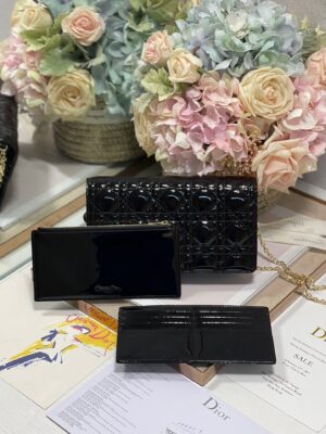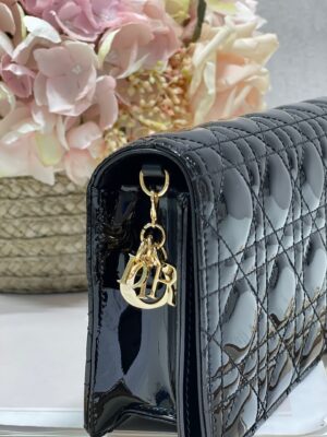 The Lady Dior pouchis distinguished by the emblematic Cannage topstitching and a detachable ‘D.I.O.R.’ charm. This unique accessory may be worn with or without its chain strap and features two removable elements: a card holder and a zipped pouch. Each may be carried individually. The pouch will instantly stand out and pairs well with other pieces from the same line.