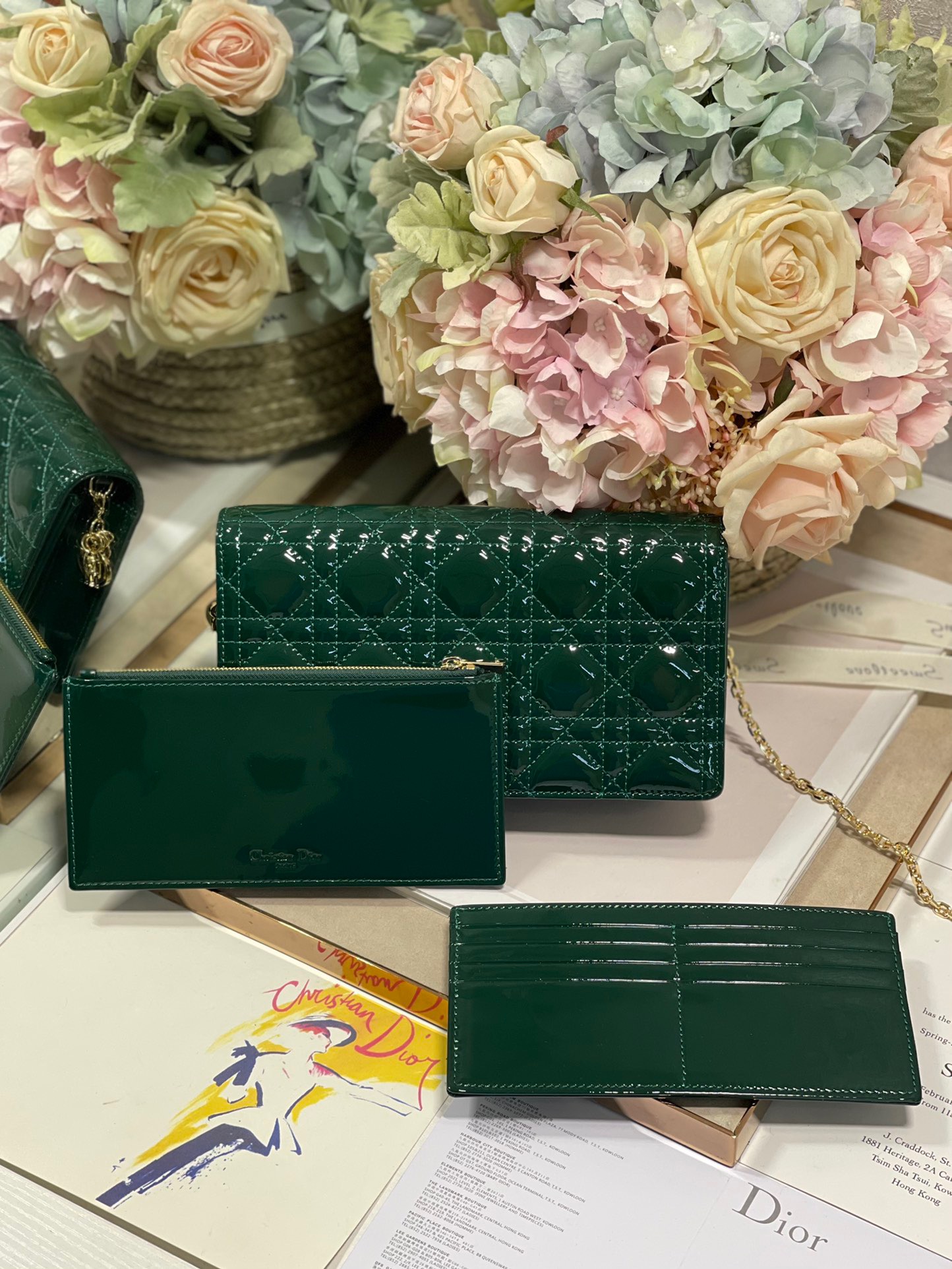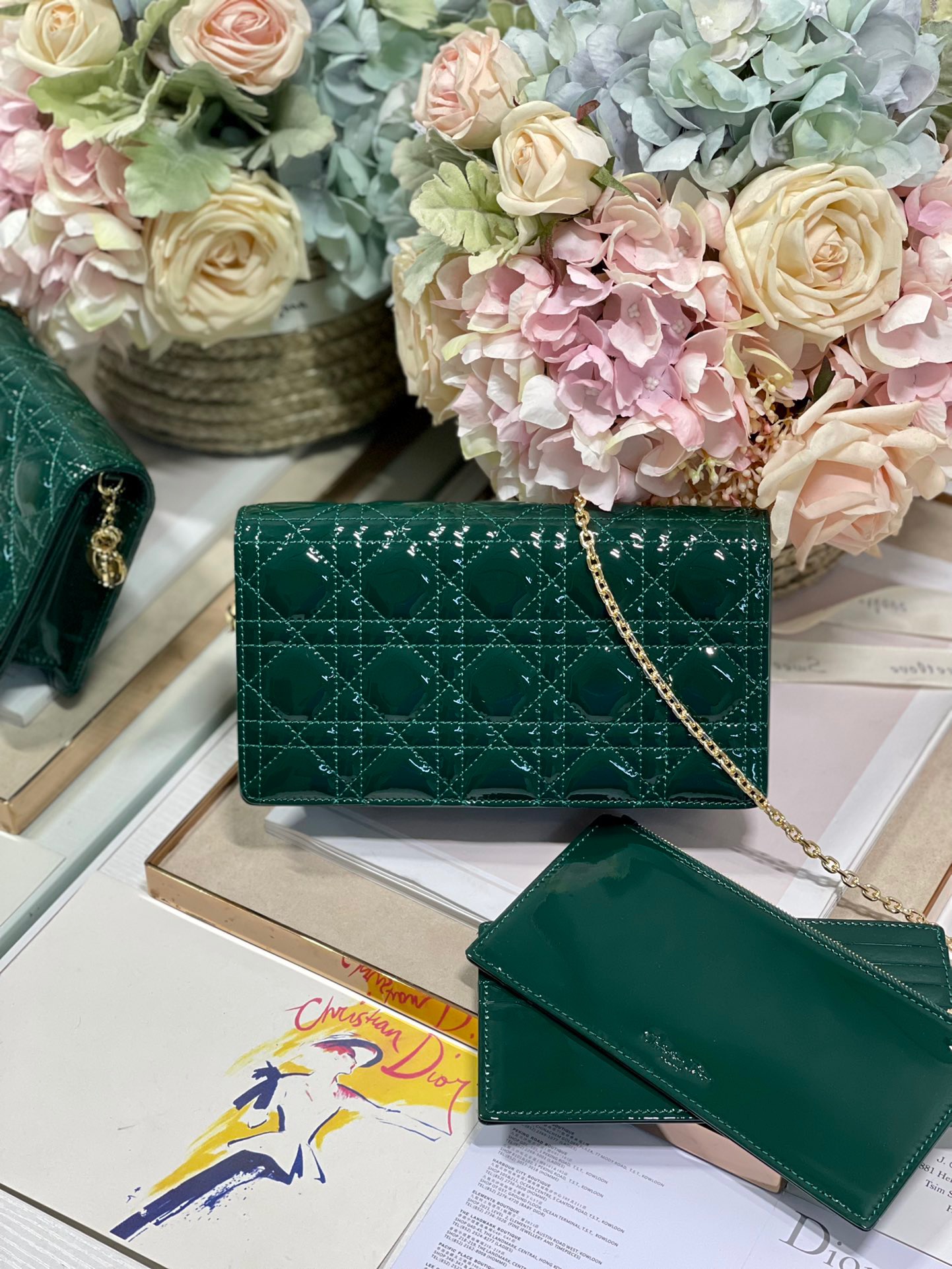 The Lady Dior pouchis distinguished by the emblematic Cannage topstitching and a detachable ‘D.I.O.R.’ charm. This unique accessory may be worn with or without its chain strap and features two removable elements: a card holder and a zipped pouch. Each may be carried individually. The pouch will instantly stand out and pairs well with other pieces from the same line.