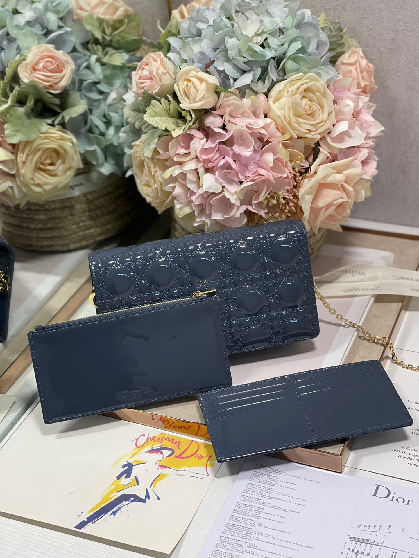 Christian Dior Lady Dior Pouch Smoky blue, For Women, Women’s Handbags 8.5in/21.5cm CD