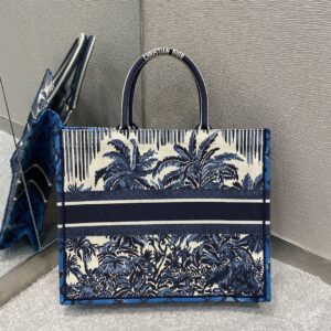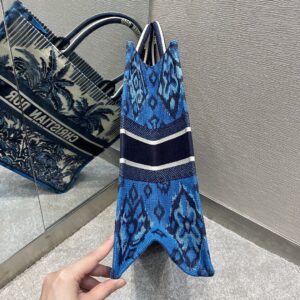 Introduced by Maria Grazia Chiuri, Creative Director of Christian Dior, the Dior Book Tote has become a staple of the Dior aesthetic. Designed to hold all the daily essentials, the style is fully embroidered with a hallmark blue Dior Oblique motif. Adorned with the ‘CHRISTIAN DIOR PARIS’ signature on the front, the large tote exemplifies the House’s signature savoir-faire and may be carried by hand or worn over the shoulder.