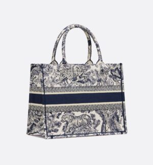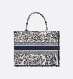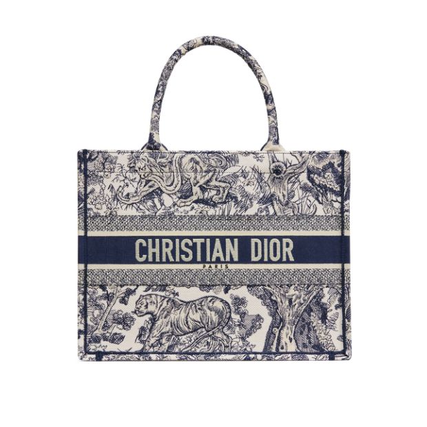 Introduced by Maria Grazia Chiuri, Creative Director of Christian Dior, the Dior Book Tote has become a staple of the Dior aesthetic. Designed to hold all the daily essentials, the style is fully embroidered with the ecru and blue Toile de Jouy motif enhanced by the Christian Dior Paris signature on the front. The medium tote exemplifies the House’s signature savoir-faire and may be carried by hand or worn over the shoulder.