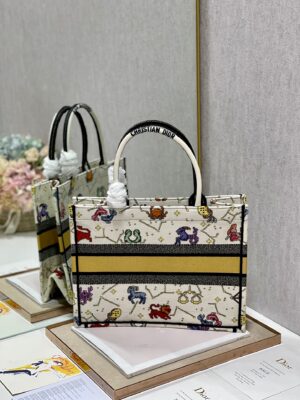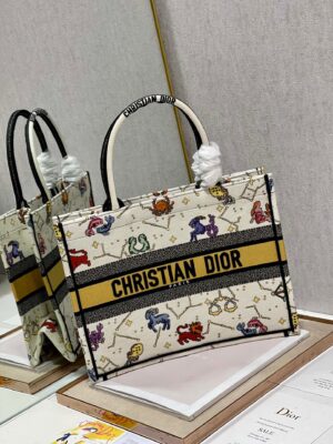 Christian Dior Medium Dior Book Tote White Multicolor, For Women, Women’s Handbags 14in/36cm CD