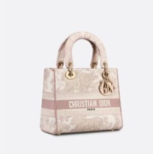 The Lady D-Lite Bag Combines Classic Elegance With House Modernity. The Front Features A ‘CHRISTIAN DIOR PARIS’ Signature While ‘D.I.O.R.’ Charms In Ruthenium-Finish Metal Enhance And Illuminate The Silhouette. Equipped With A Wide, The Medium Lady D-Lite Bag Can Be Carried By Hand Or Worn Crossbody.