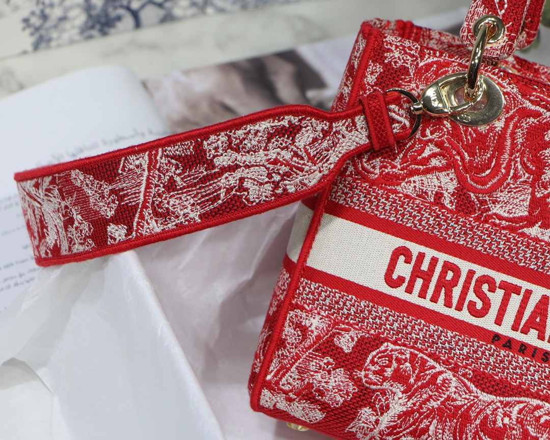 Christian Dior Medium Lady D-Lite Bag Red, For Women, Women’s Handbags 24cm/9.5in CD