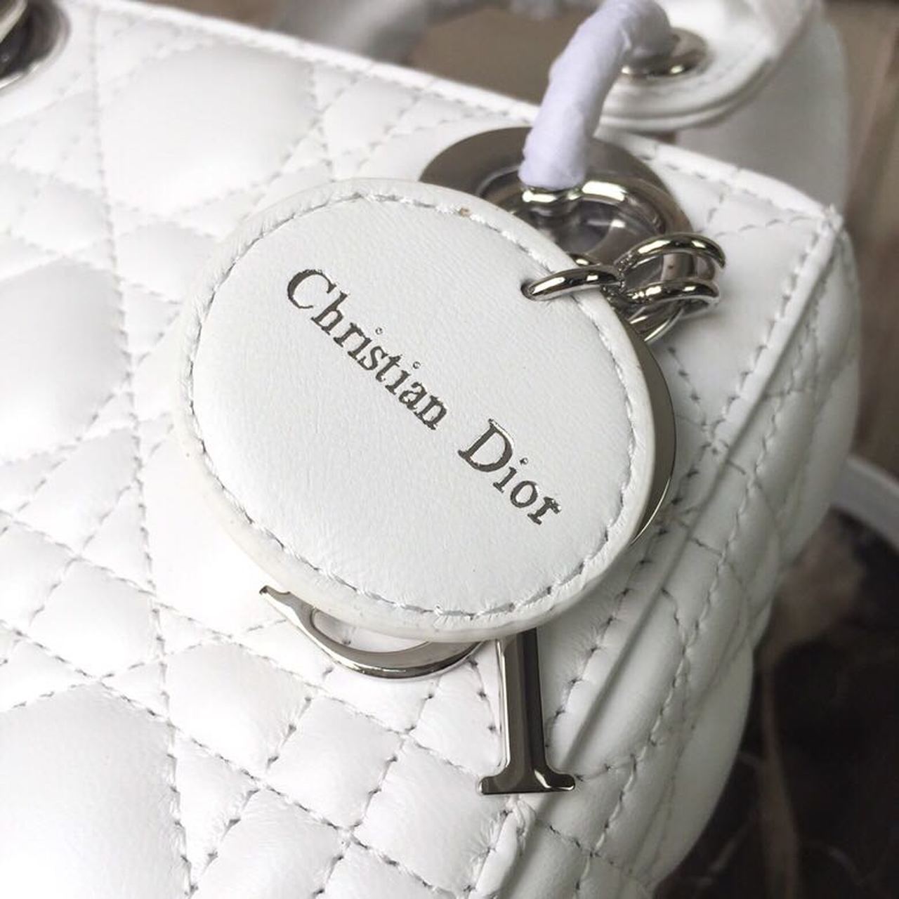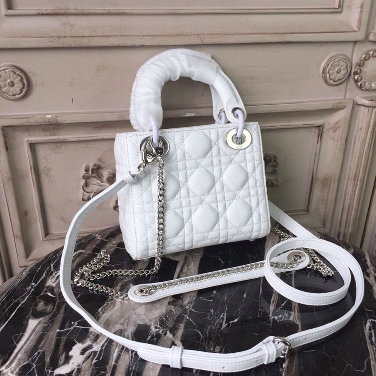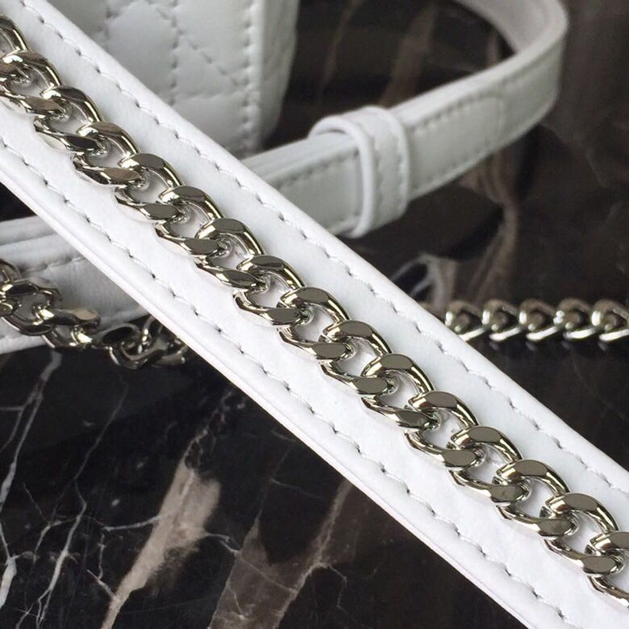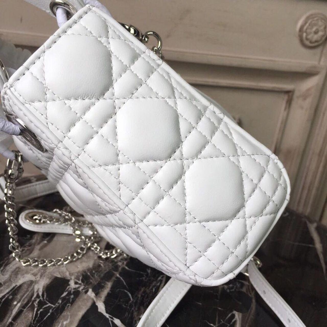 Christian Dior Mini Lady Dior Bag White Chain Silver Hardware For Women 17cm/6.5in CD