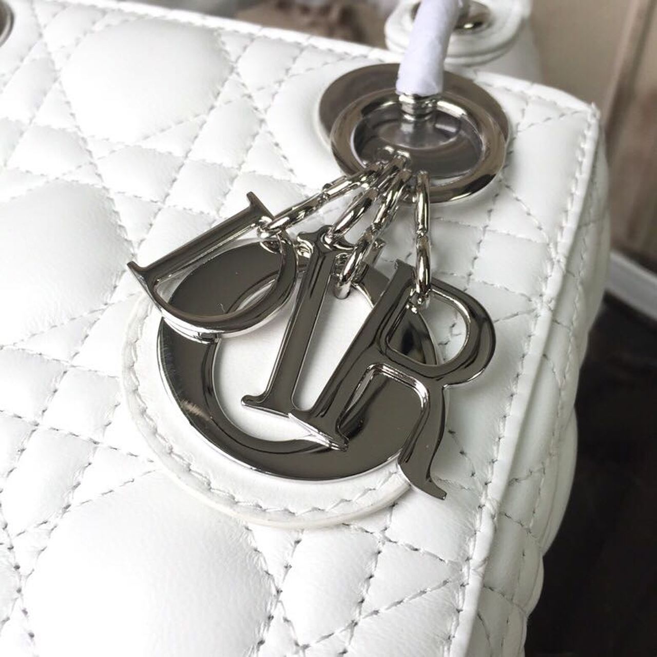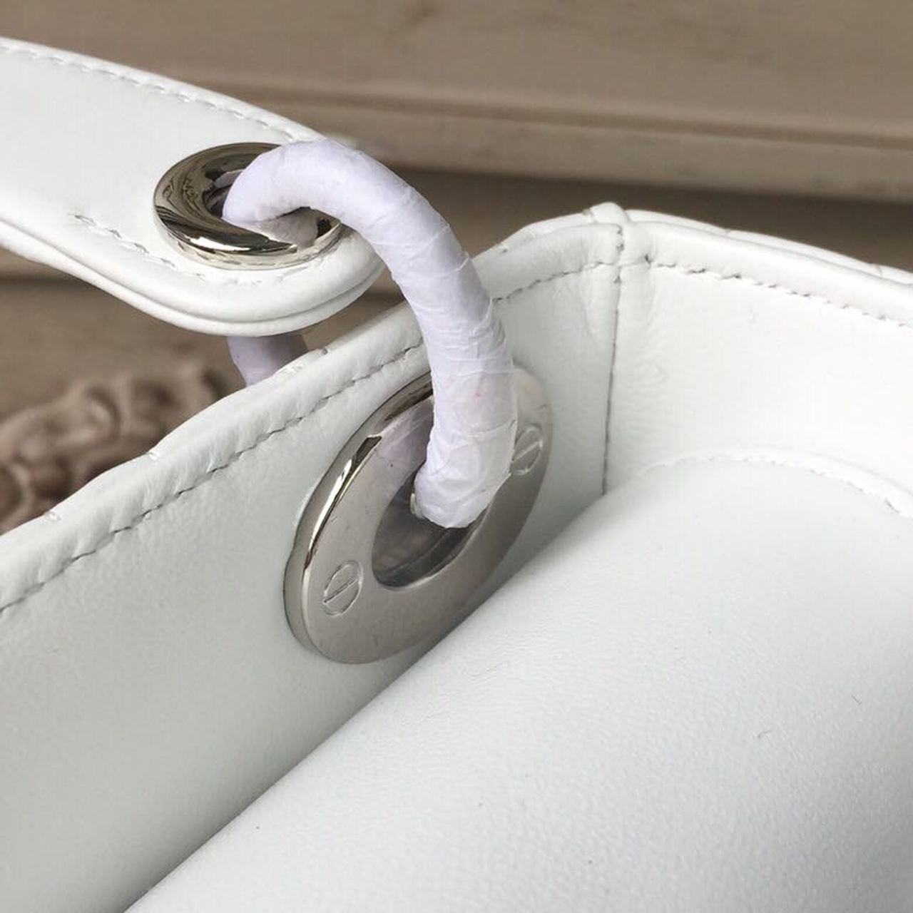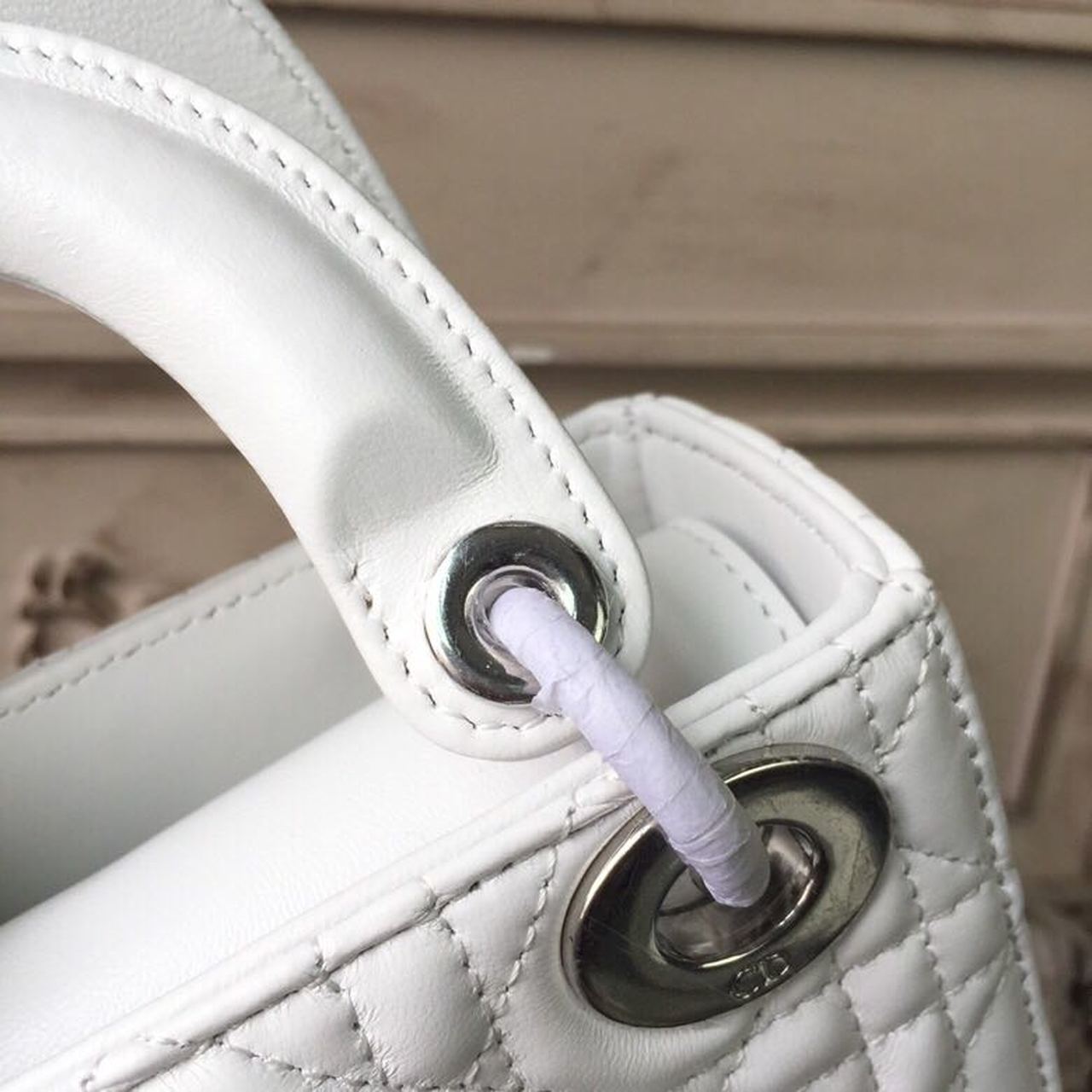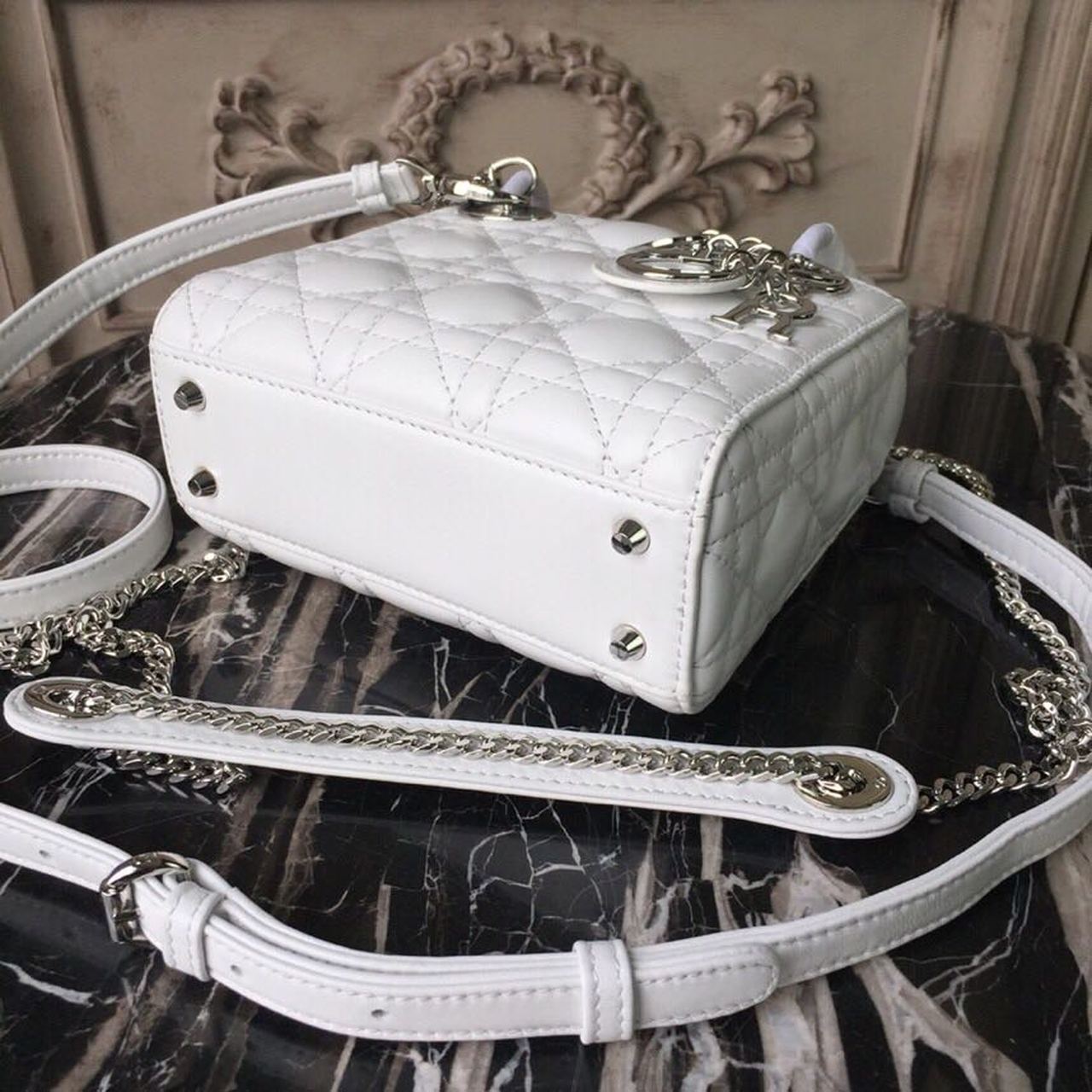 Christian Dior Mini Lady Dior Bag White Chain Silver Hardware For Women 17cm/6.5in CD