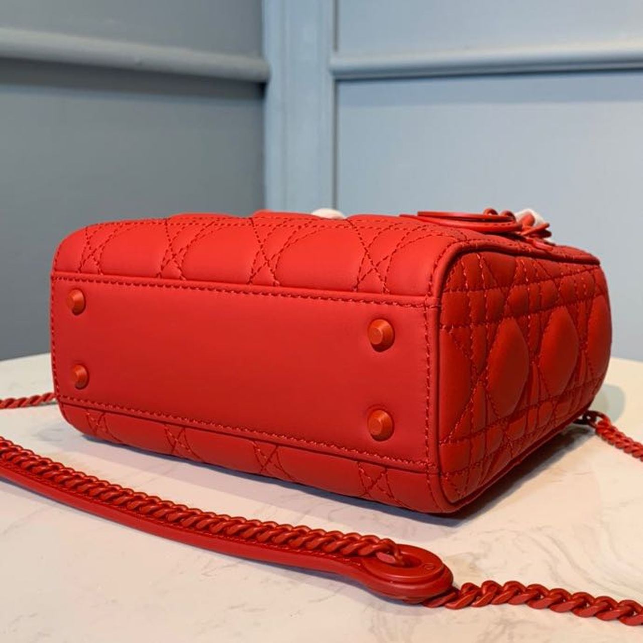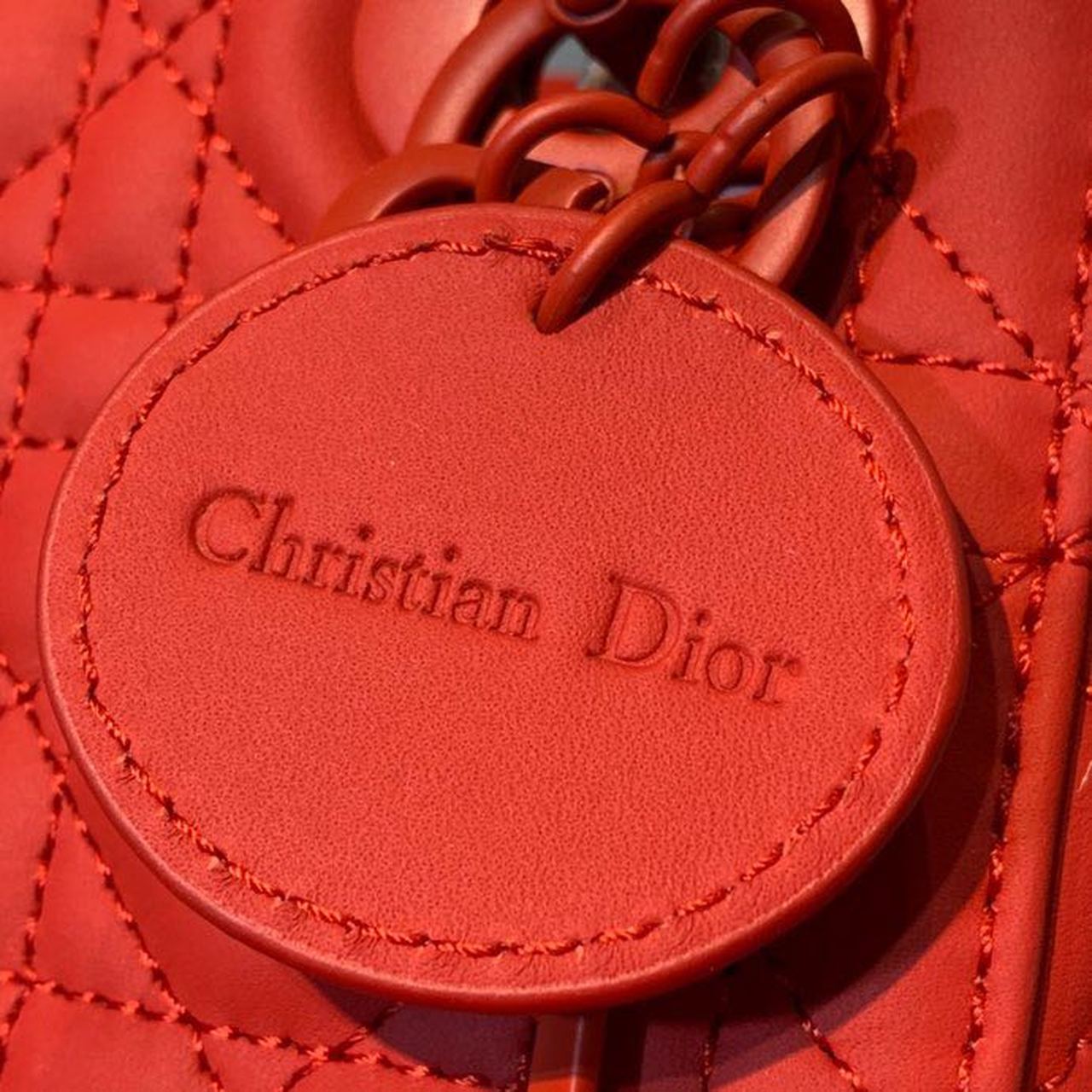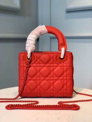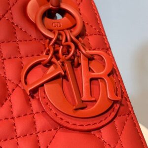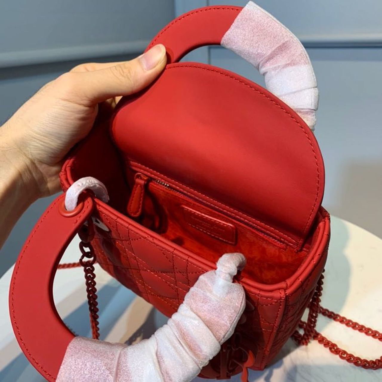 The Lady Dior handbag epitomizes the House’s vision of elegance and beauty. Refined and sleek, this creation is timeless. Covered with Cannage stitching, it boasts an instantly recognizable quilted texture. The pale matte-finish metal ‘D.I.O.R.’ charms embellish and illuminate its silhouette. Featuring a removable chain shoulder strap, the miniature Lady Dior bag can be carried by hand or worn crossbody as an ideal evening wear companion.