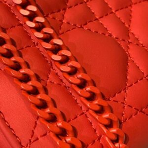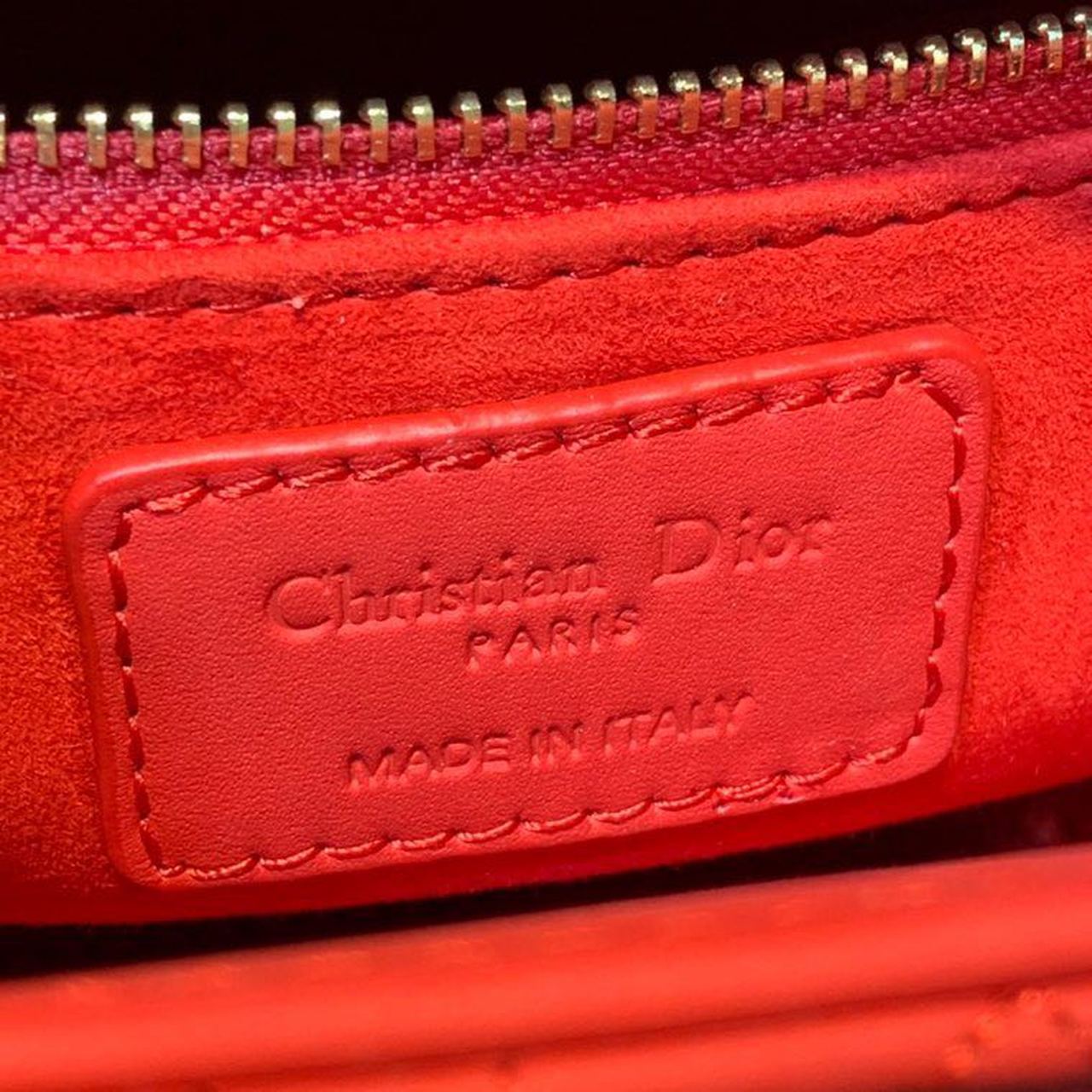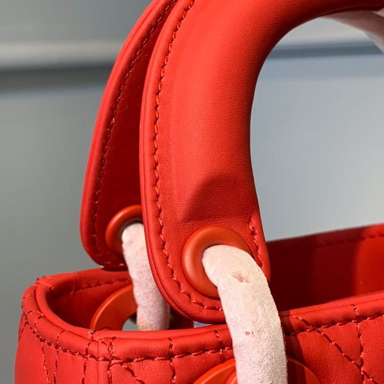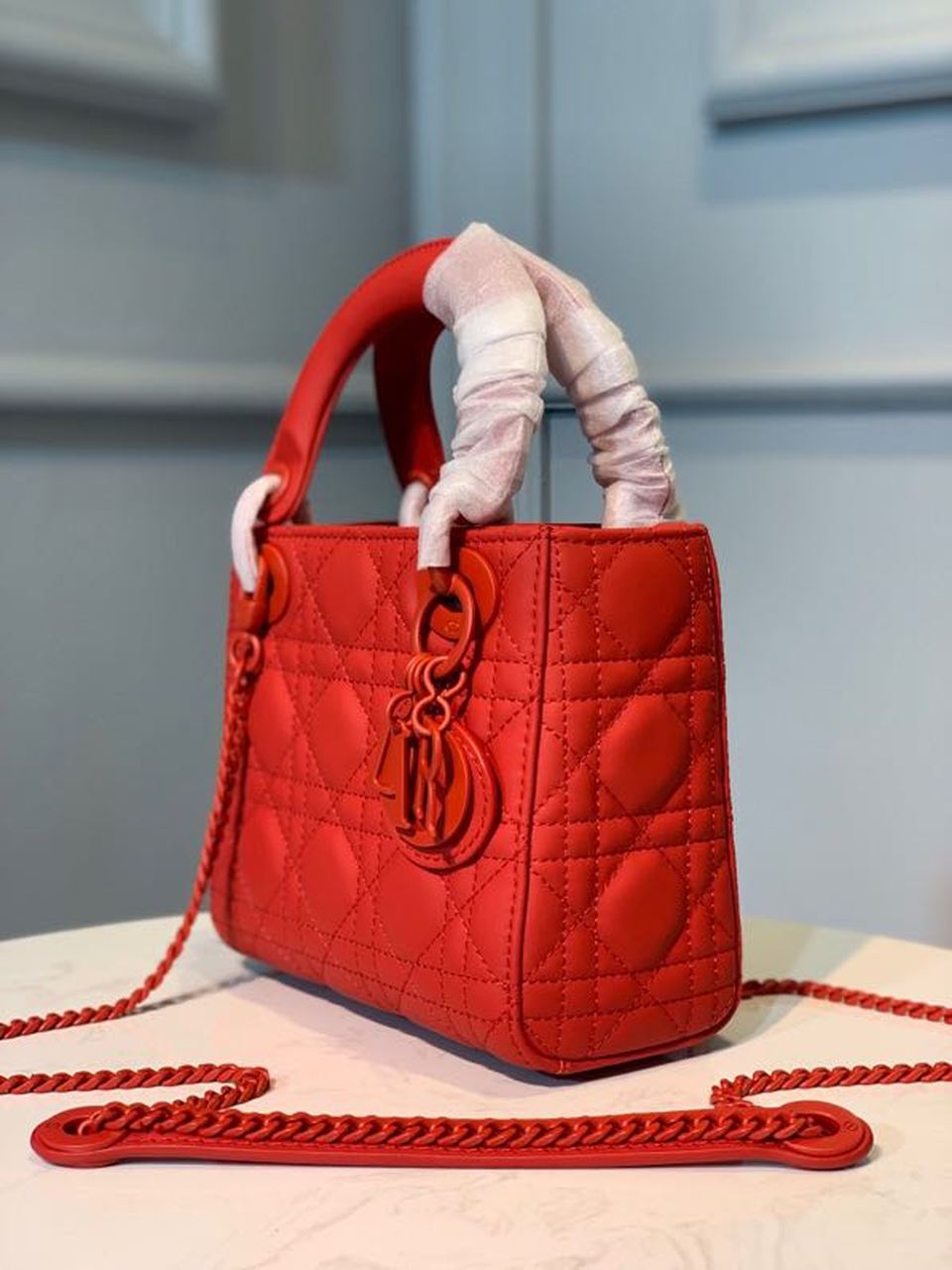 The Lady Dior handbag epitomizes the House’s vision of elegance and beauty. Refined and sleek, this creation is timeless. Covered with Cannage stitching, it boasts an instantly recognizable quilted texture. The pale matte-finish metal ‘D.I.O.R.’ charms embellish and illuminate its silhouette. Featuring a removable chain shoulder strap, the miniature Lady Dior bag can be carried by hand or worn crossbody as an ideal evening wear companion.