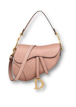 Maria Grazia Chiuri brings a fresh update to the iconic Saddle bag. Crafted in blush grained, the legendary design features a Saddle flap with a magnetic ‘D’ stirrup clasp, as well as an antique gold-finish metal ‘CD’ signature on either side of the strap. Featuring a thin, adjustable and removable shoulder strap, the Saddle bag may be carried by hand, worn over the shoulder or crossbody.