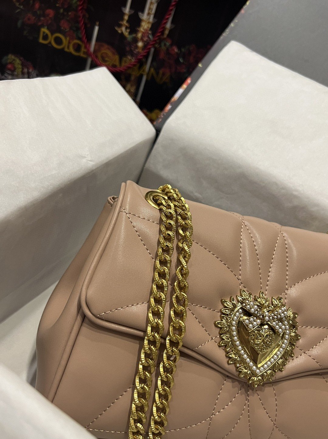 Dolce & Gabbana Large Devotion Shoulder Bag In Quilted Nappa Beige For Women 11.4in/29cm DG