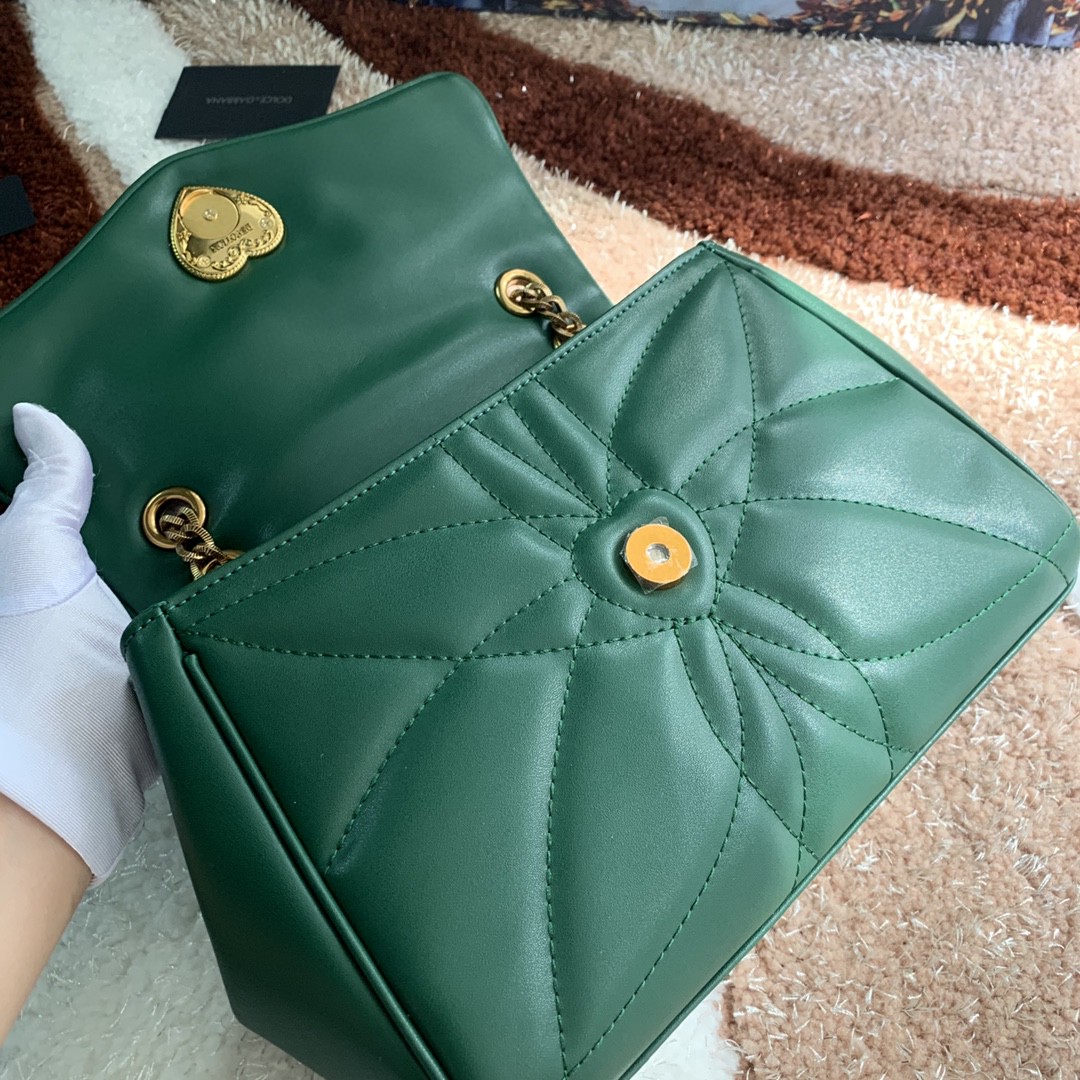 Dolce & Gabbana Medium Devotion Shoulder Bag In Quilted Nappa Green For Women 10.2in/26cm DG