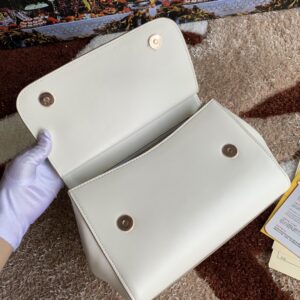 Front flap with hidden snap closure and galvanic logo plate in the front