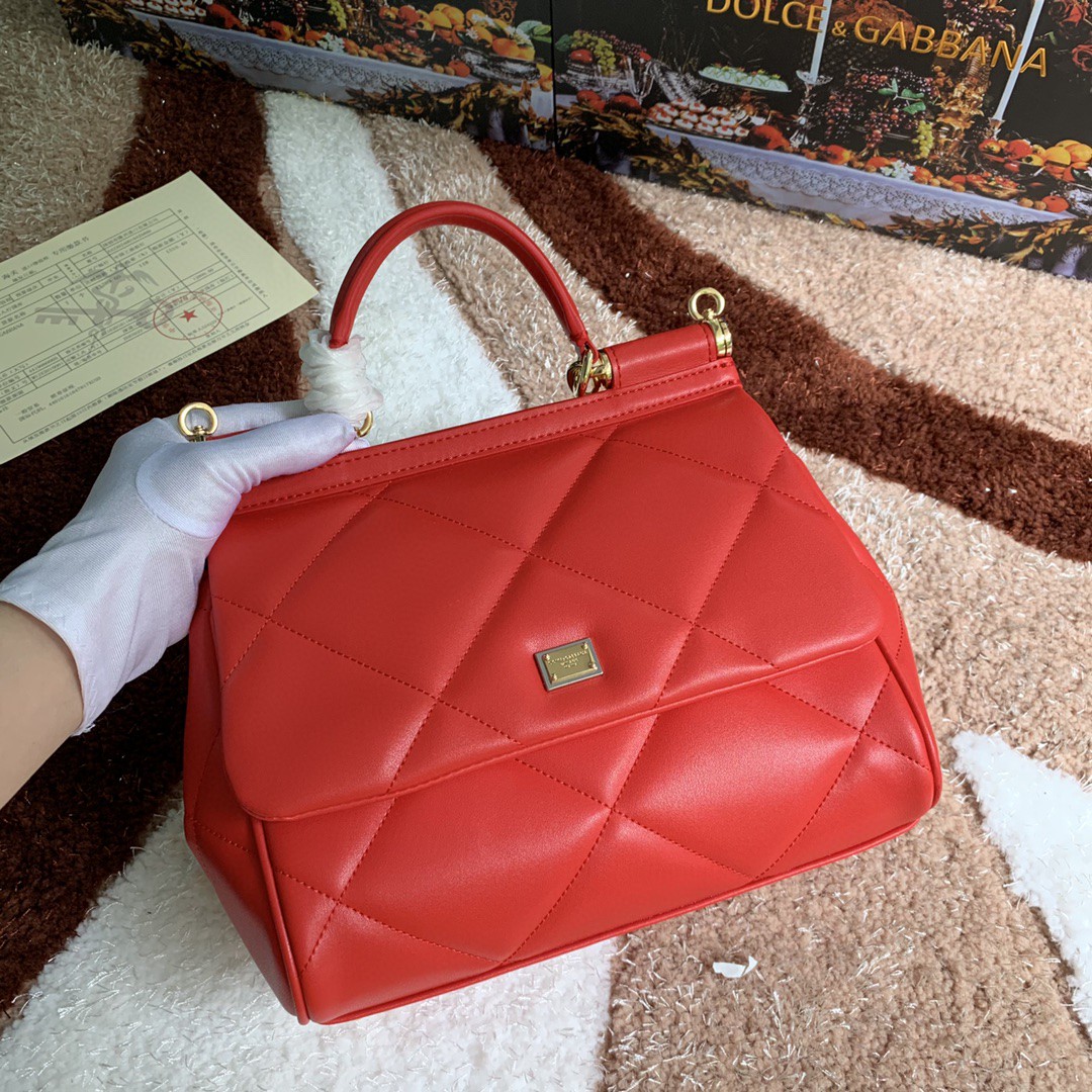 Dolce & Gabbana Medium Sicily Bag In Quilted Red For Women 10.2in/26cm DG BB6002AW5918H383