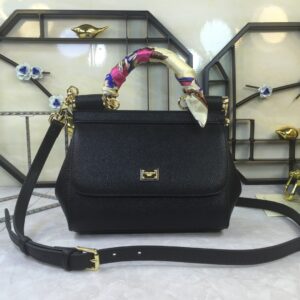 Dolce & Gabbana Medium Sicily Handbag In Dauphine Black For Women 10.2in/26cm DG  BB4347A100180999