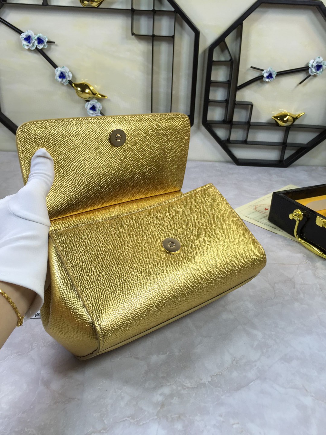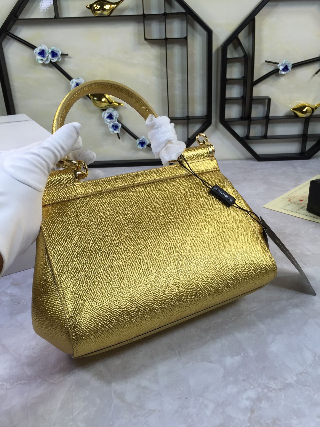 Dolce & Gabbana Medium Sicily Handbag In Dauphine Gold For Women 10.2in/26cm DG
