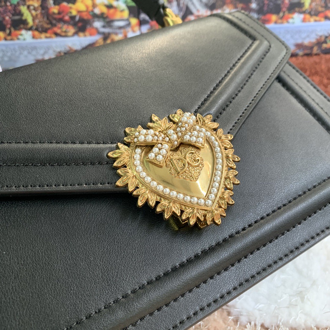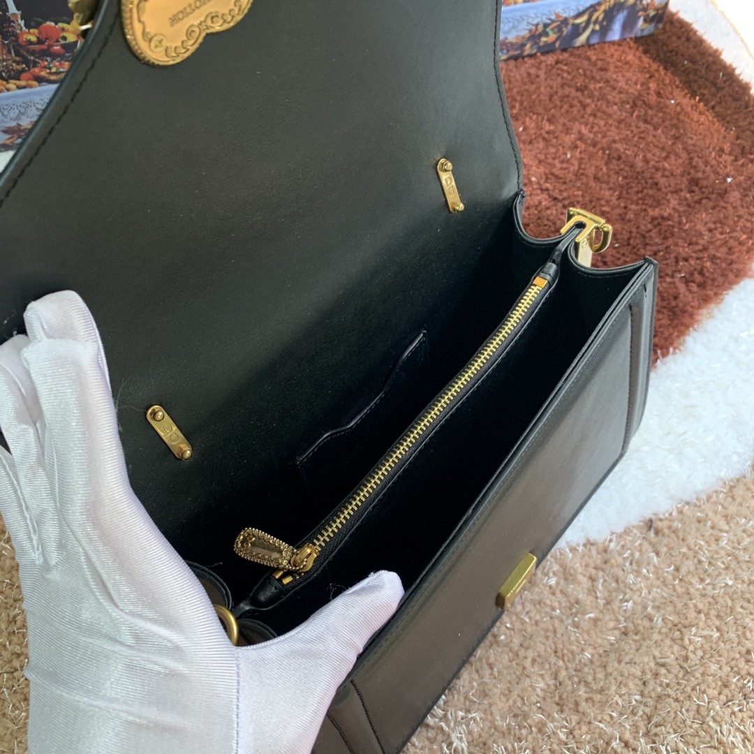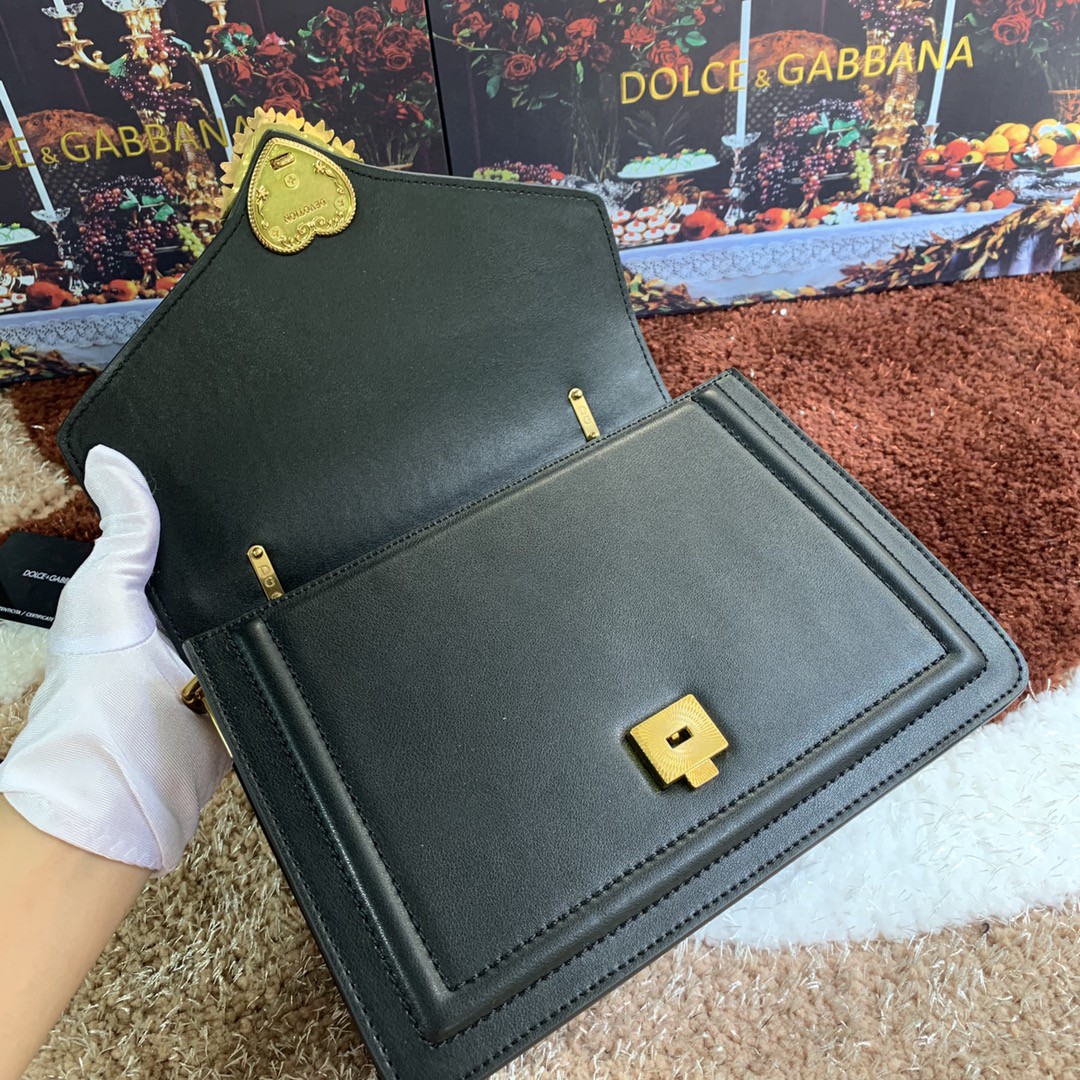 Front flap with handmade bejeweled and logoed heart made of metal alloy with pearl inlays