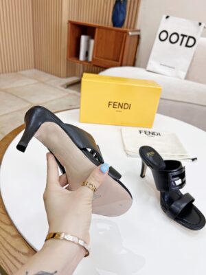Sandals with wide band and stiletto heel.