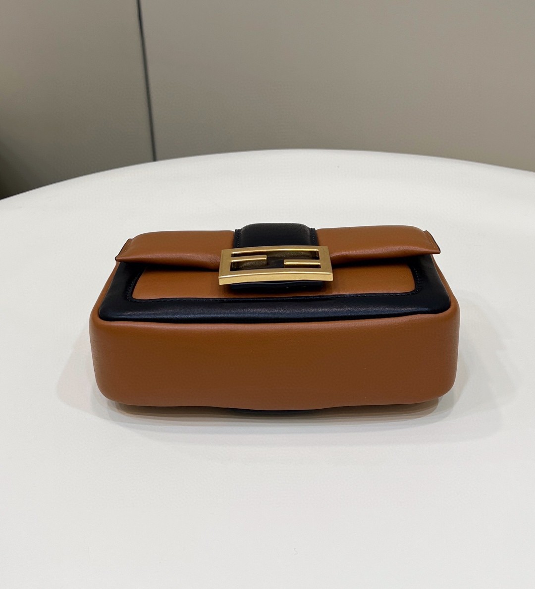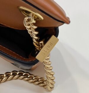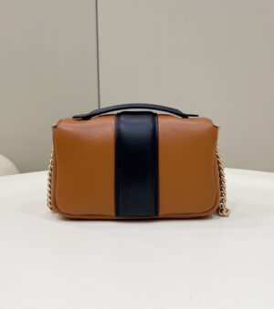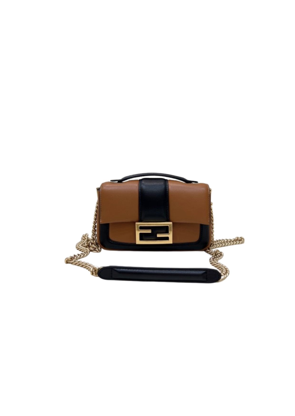 Baguette bag with sliding chain made from soft brown nappa leather,