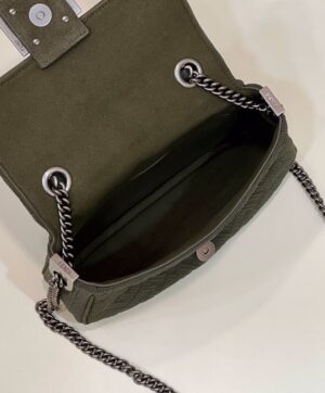 Can be carried by hand or over the shoulder thanks to the sliding-chain shoulder strap.