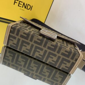 Baguette Soft Trunk bag made of fabric with jacquard FF motif. Flap with magnetic FF clasp.