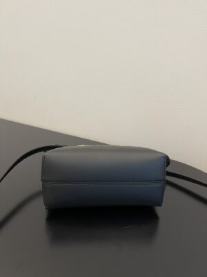 Iconic mini By The Way Boston bag, made of black leather with hot-stamped FENDI ROMA lettering. Zip fastening.