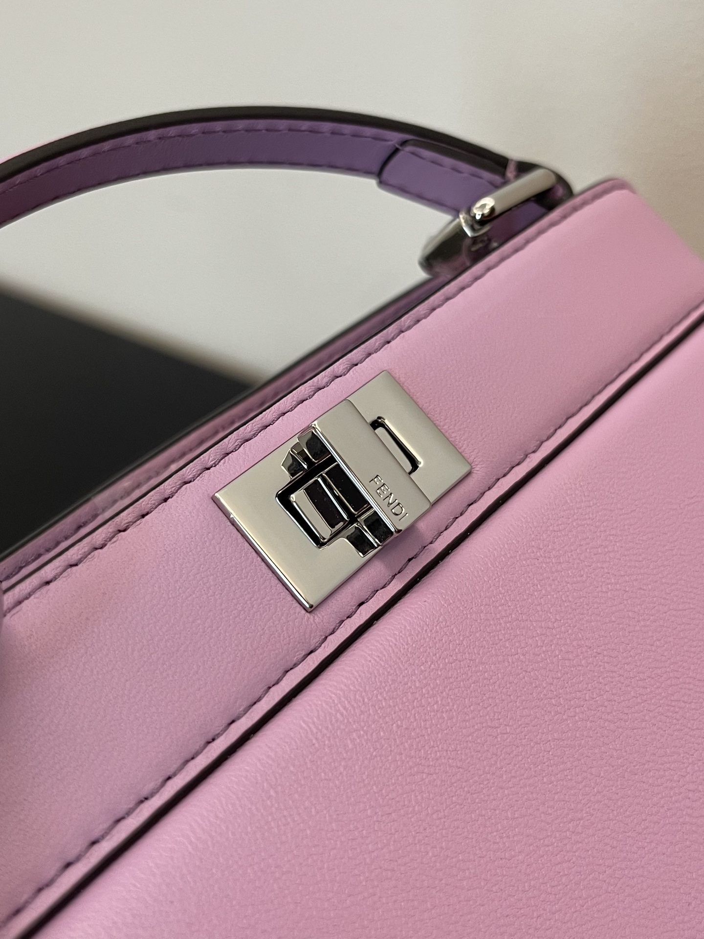 Iconic Peekaboo ISeeU bag in an ideal, compact size. Made from soft, padded, Light Purple nappa leather and embellished with the classic twist lock on both sides.