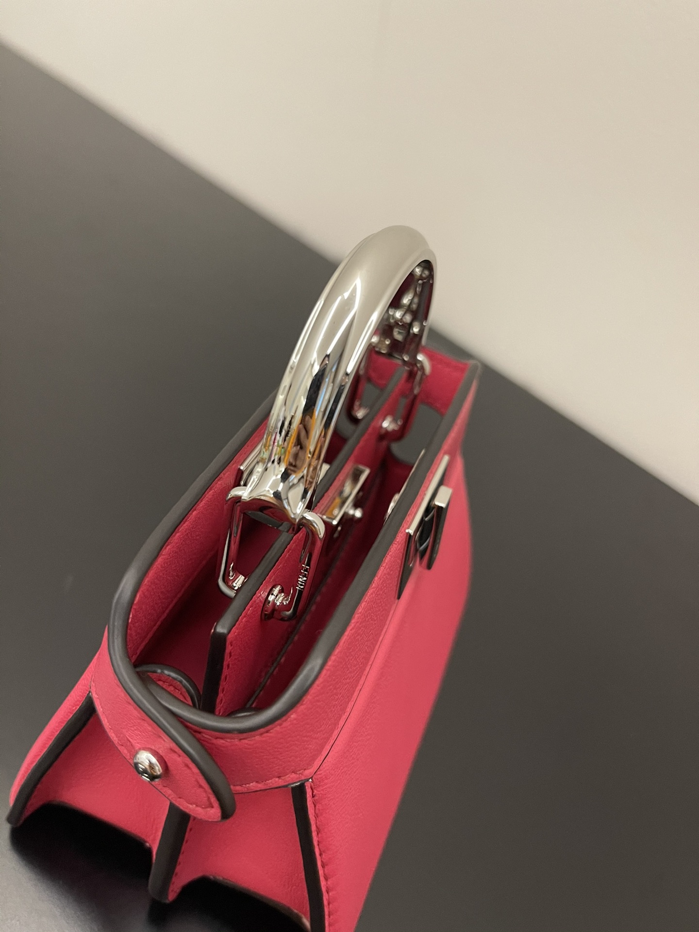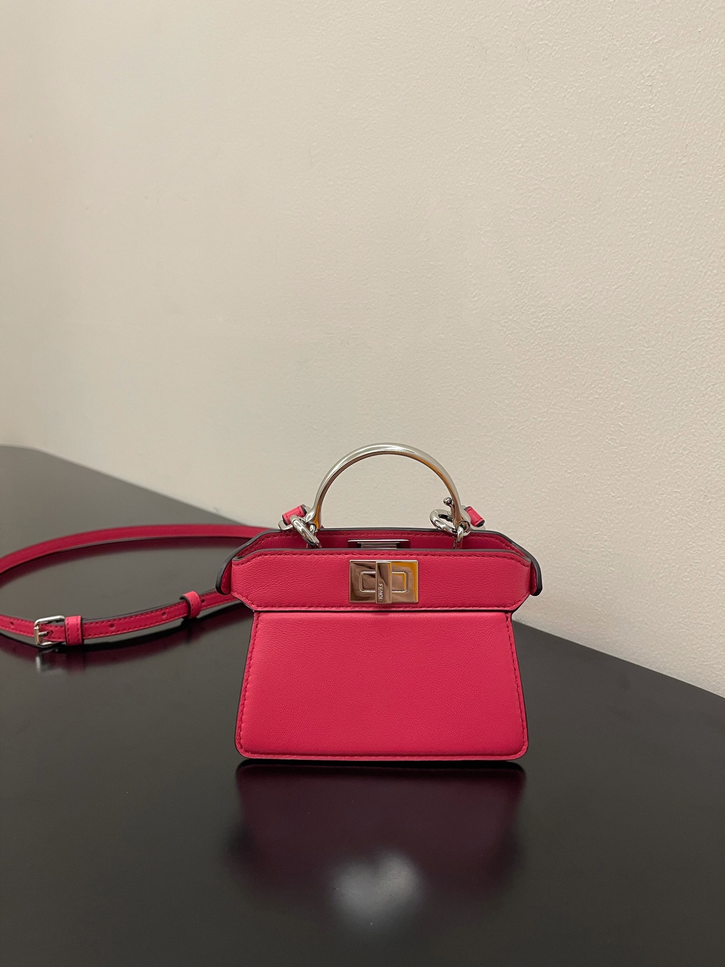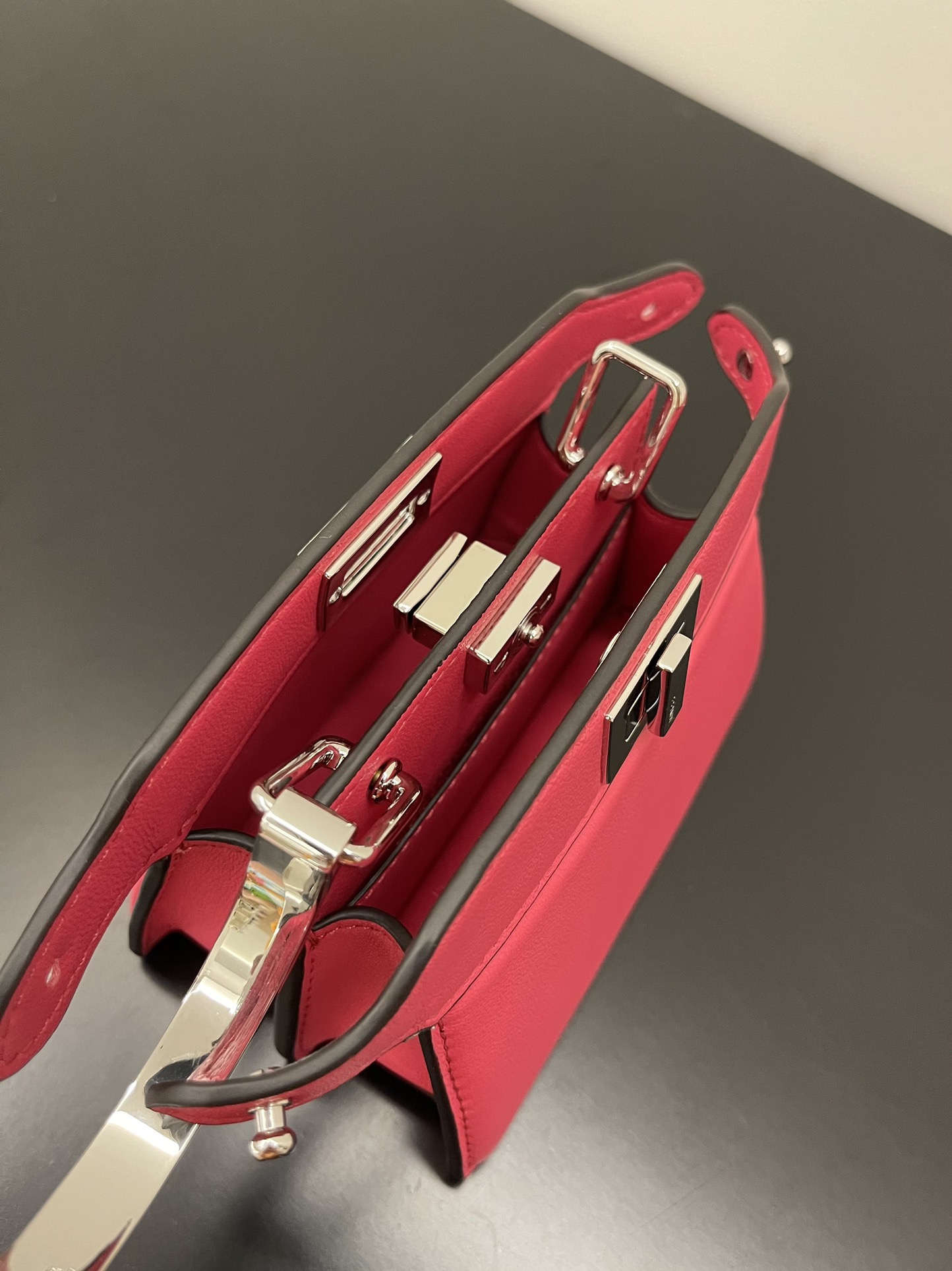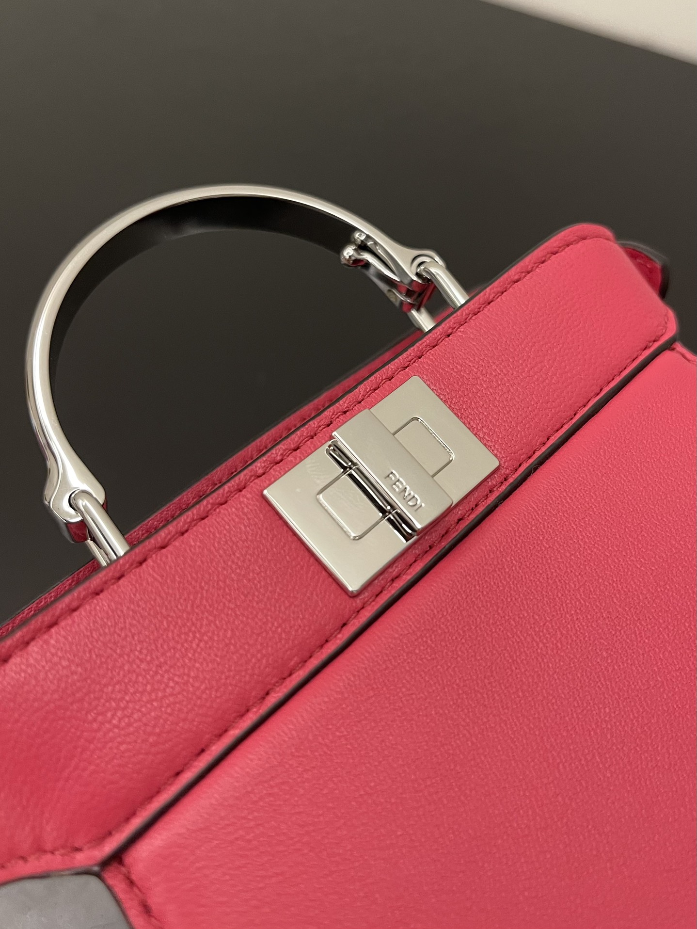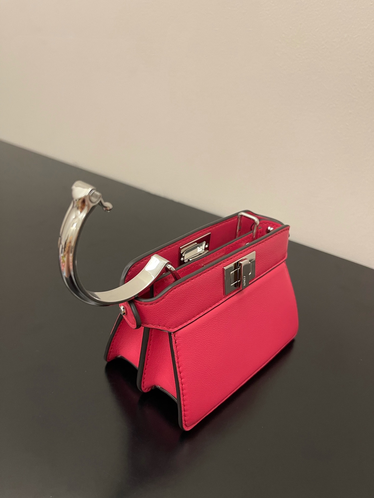 Iconic Peekaboo ISeeU bag in an ideal, compact size. Made from soft, padded, Pink nappa leather and embellished with the classic twist lock on both sides.