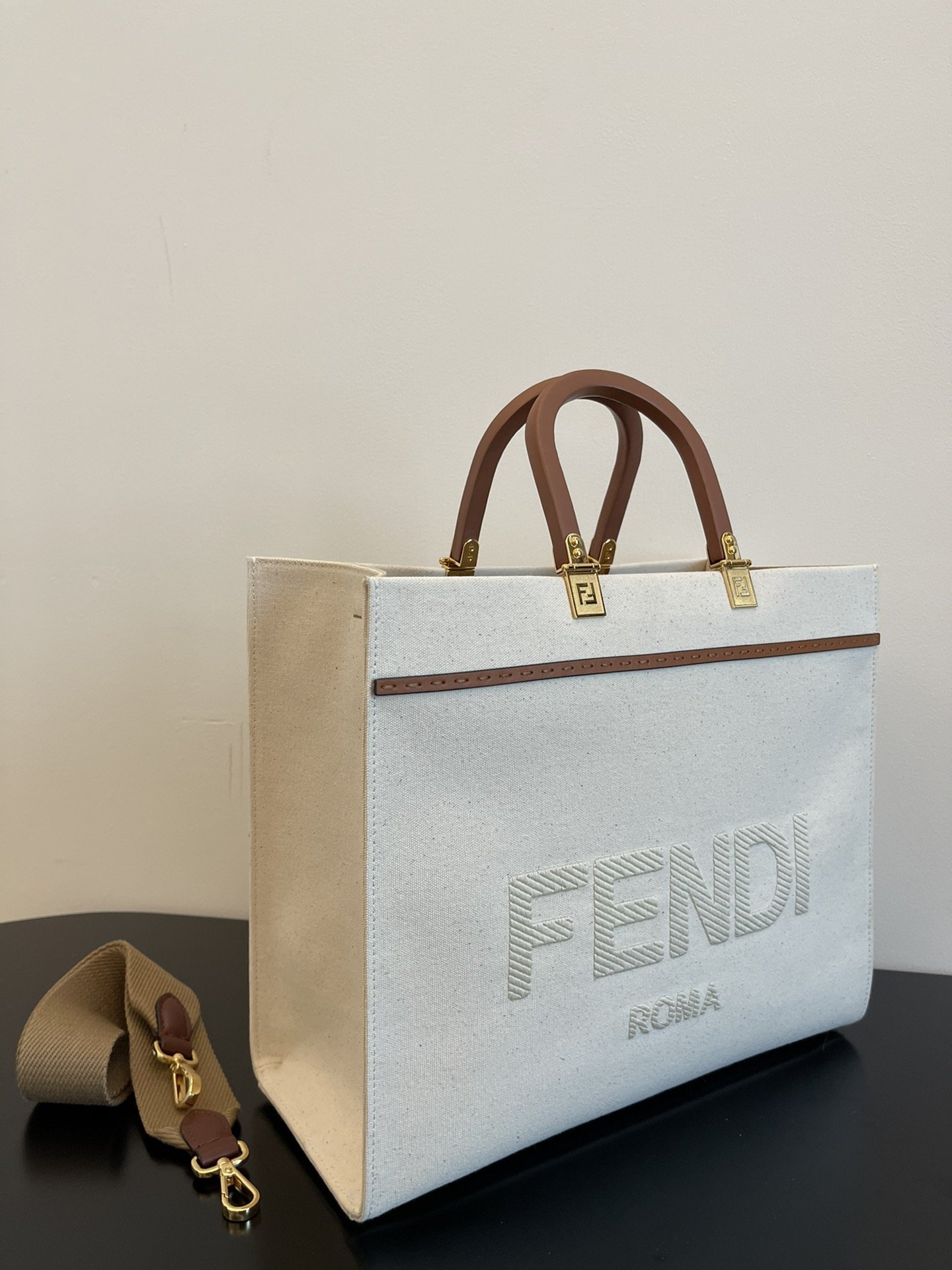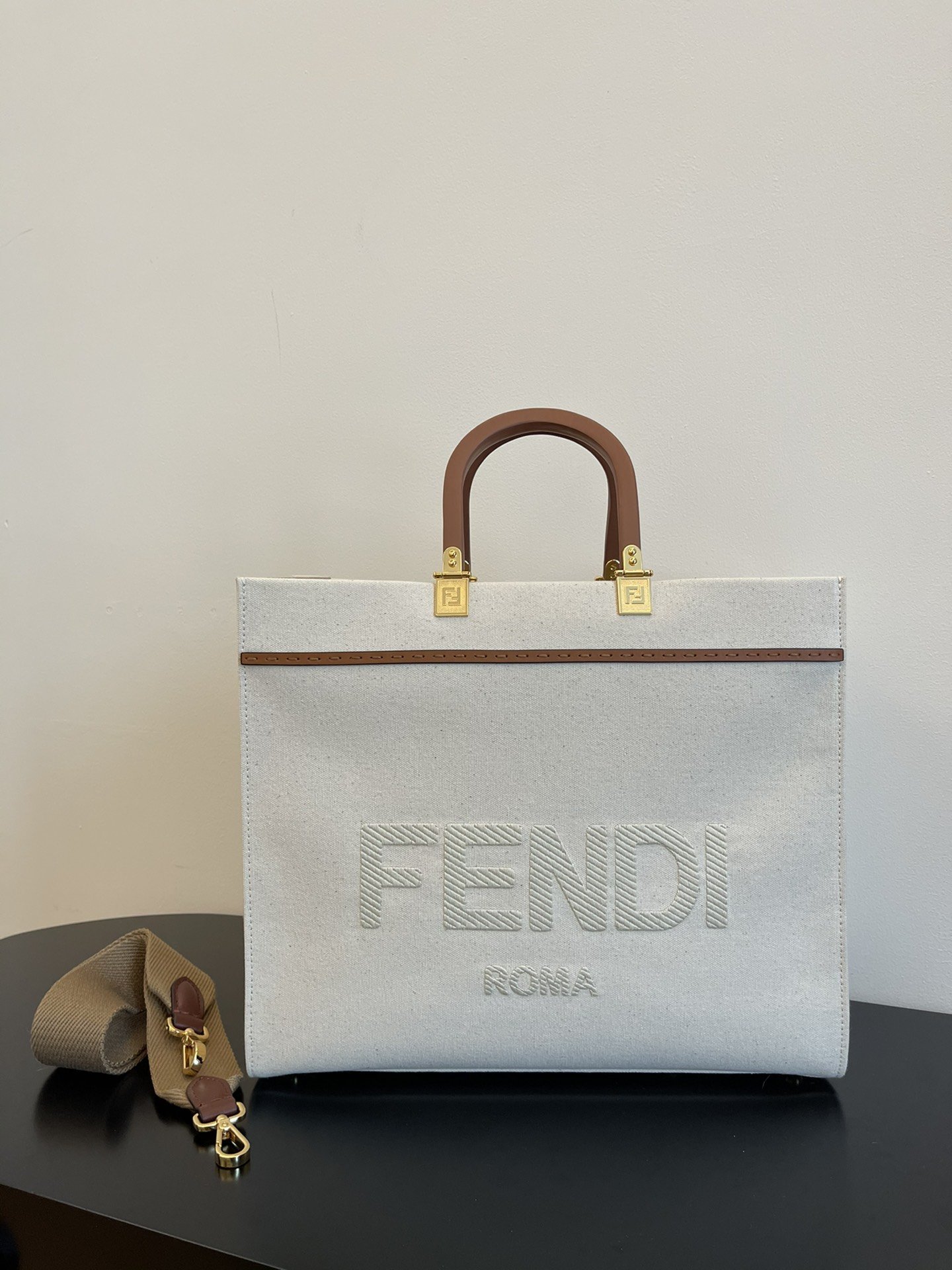 Fendi Sunshine Medium Tote Bag Light Grey Canvas For Women, Women’s Bags, Shoulder Bags 13.8in/35cm FF 8BH386