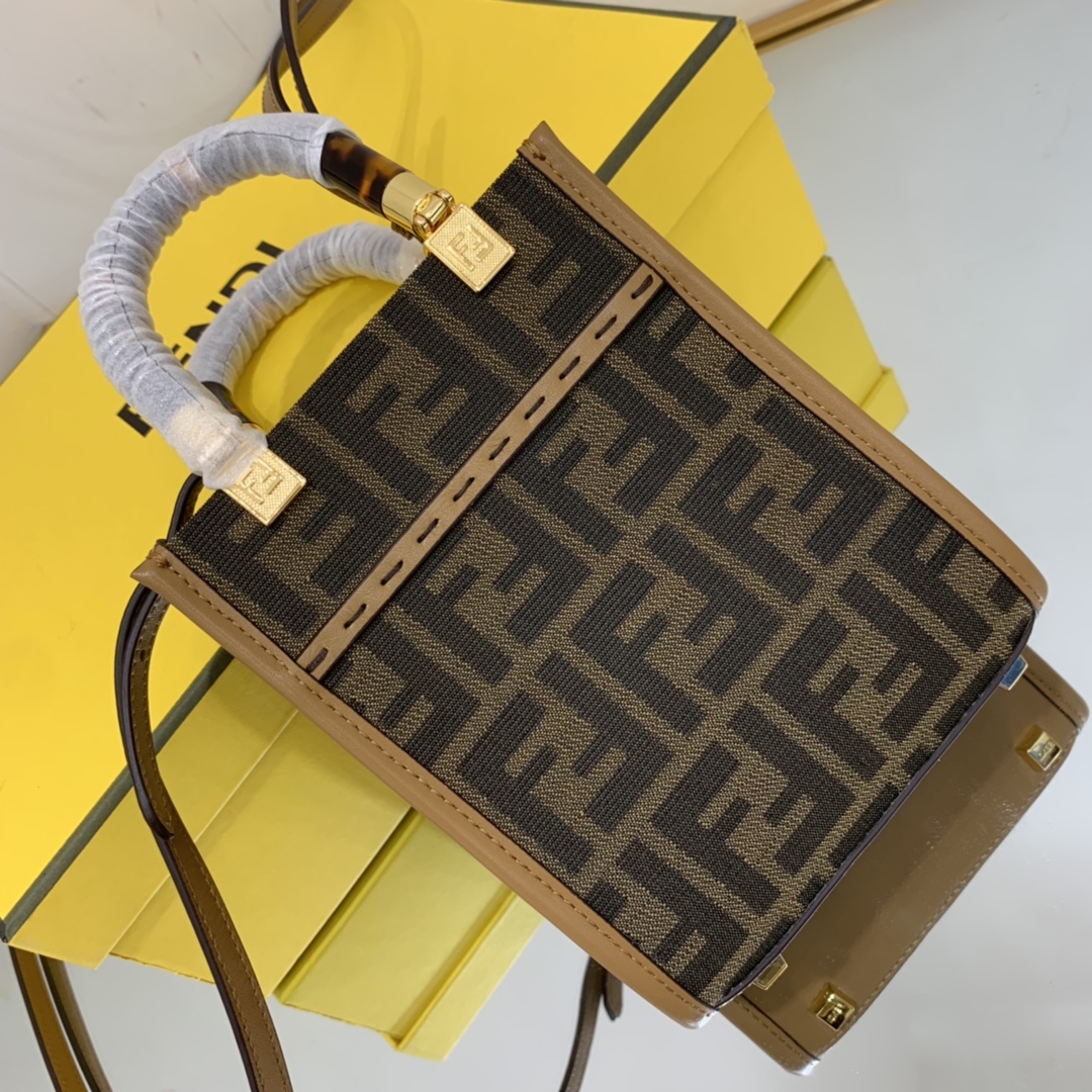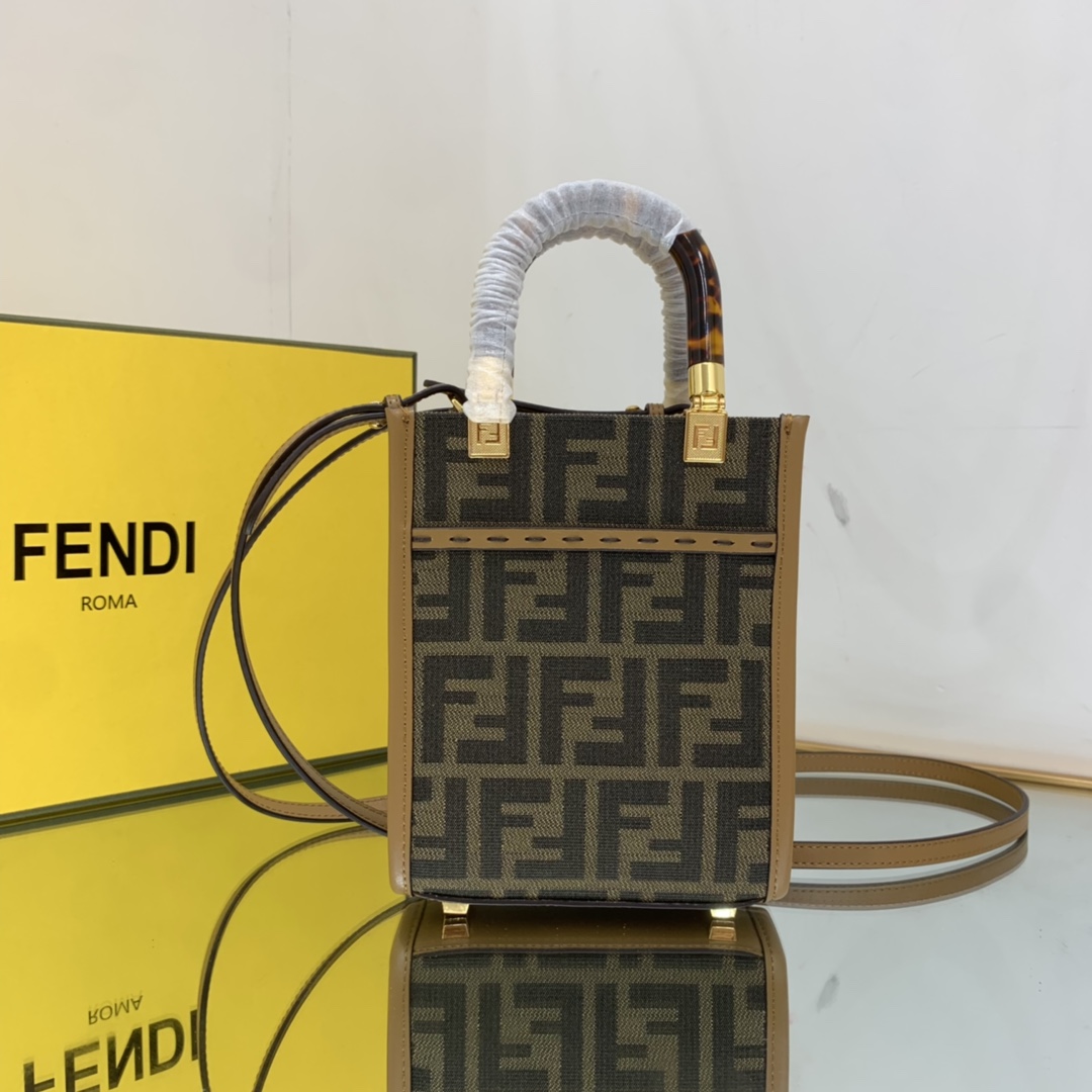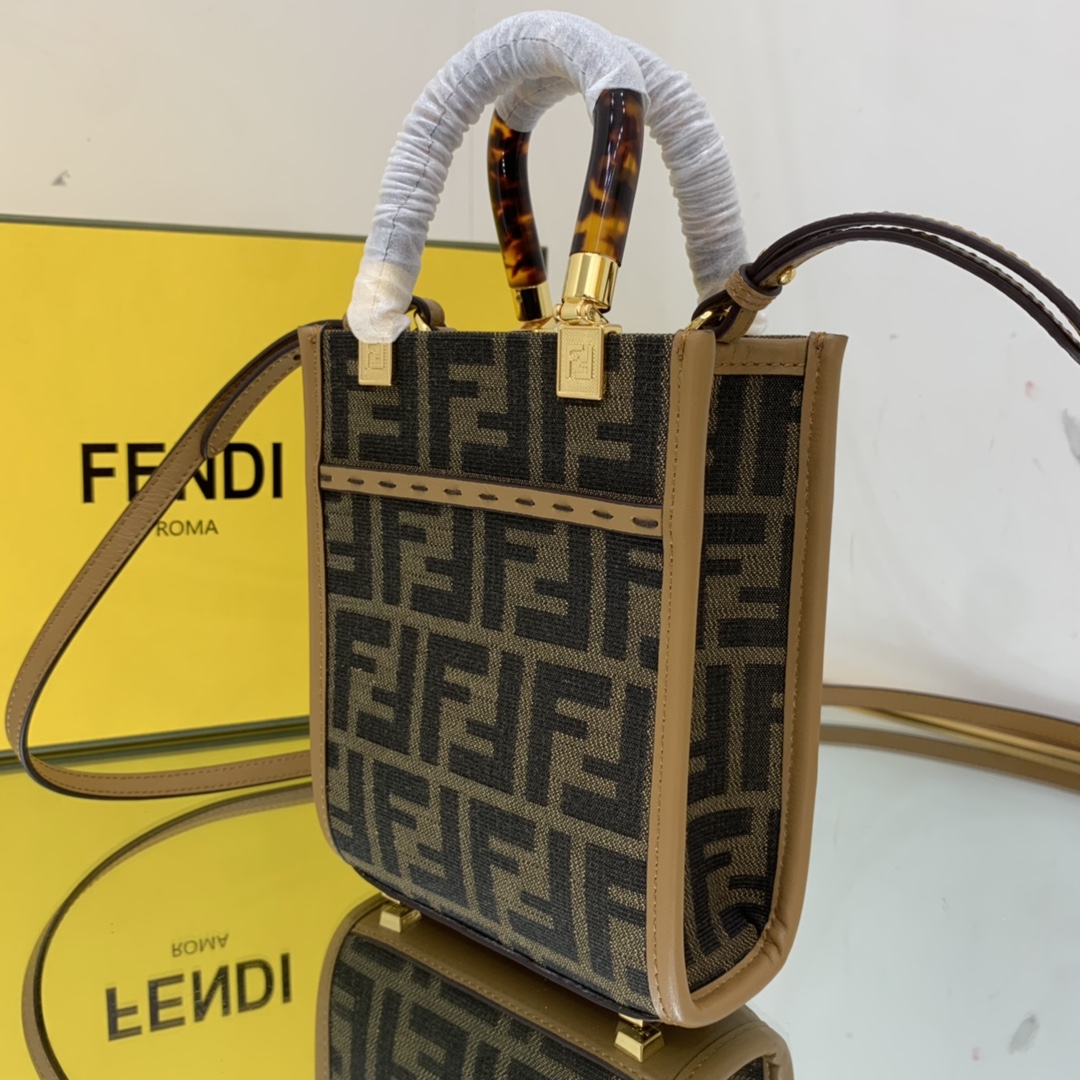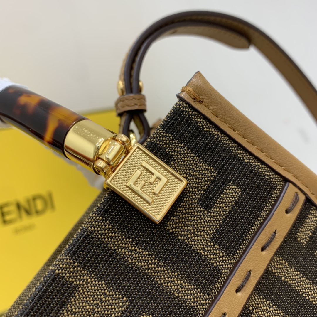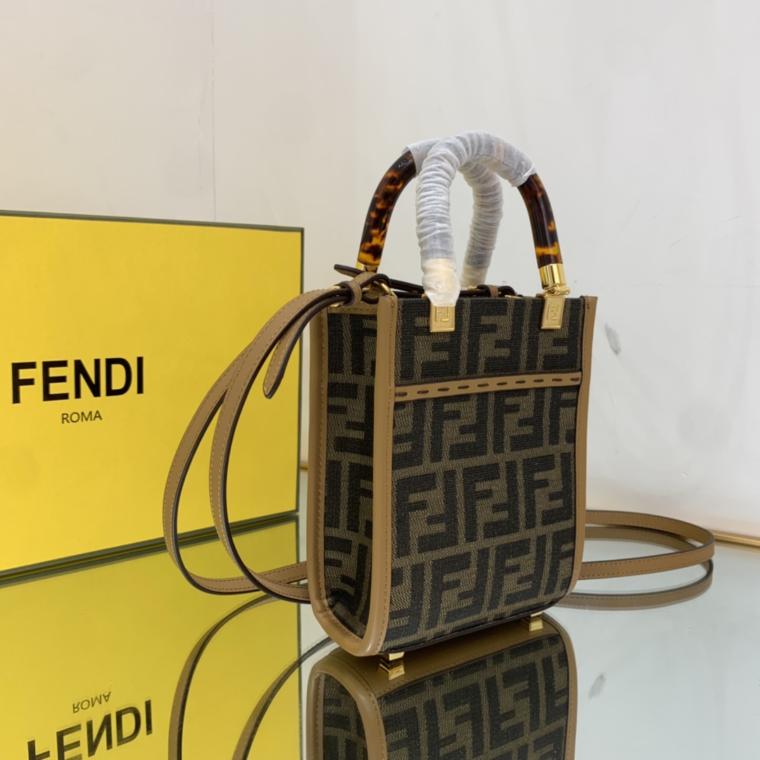Fendi Sunshine Shopper Brown FF Fabric Mini Bag For Woman 13cm/5in