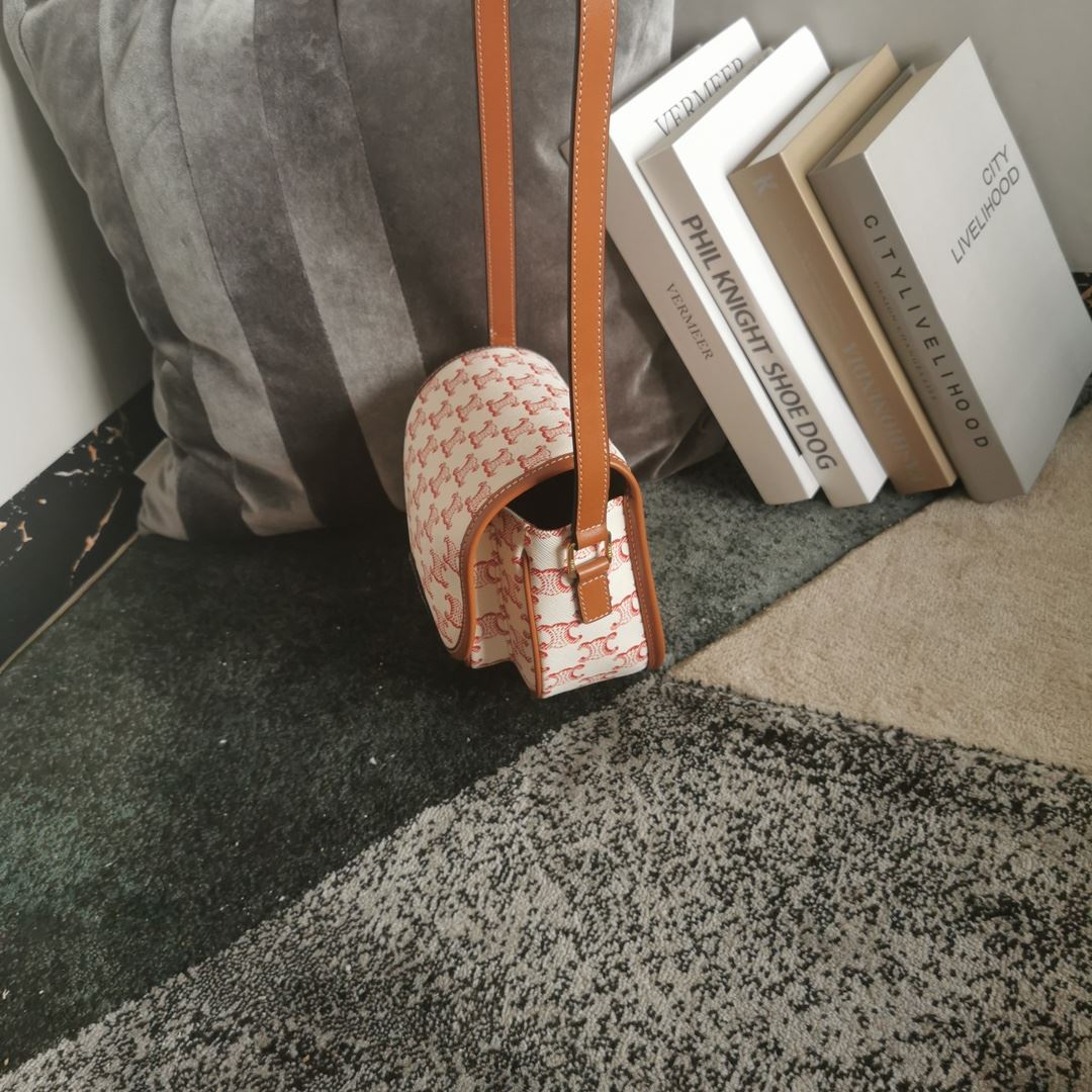 Folco Bag In Triomphe Canvas With Celine Print Pink And White For Women‎ 7in/18.5cm